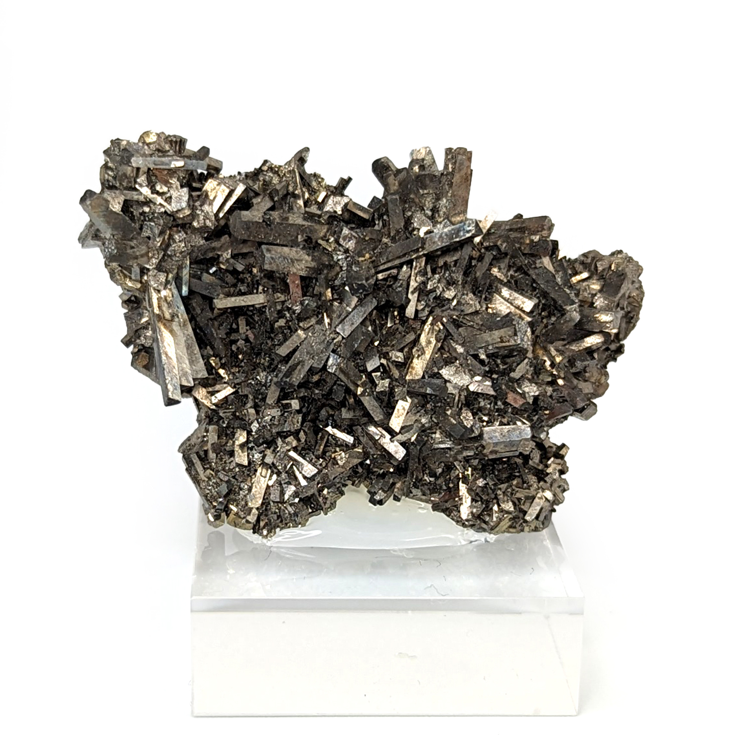 Joli groupe de cristaux d'arsénopyrite dorée et brillante.