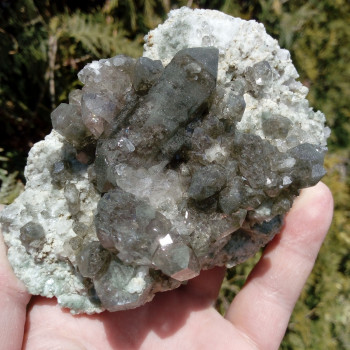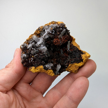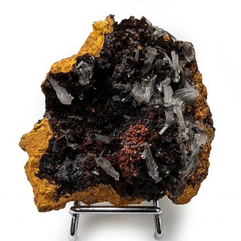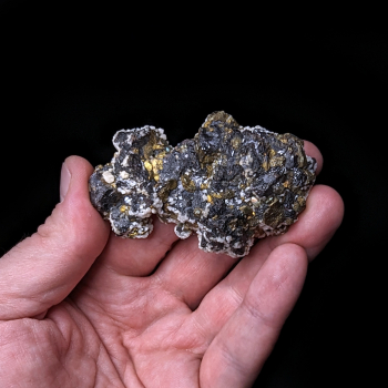 Superbe contraste entre les Fluorite vert d’eau et la Galène noire métallique. Beaucoup de cristaux de Fluorite éparpillés sur leur gangue de Galène, tout est parfaitement cristallisé. Spécimen de collection, très rare à trouver.9,70 x 7,40 x 6 cmRéférence : 1632