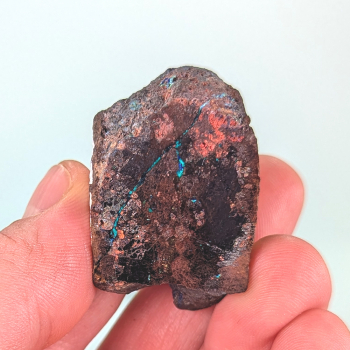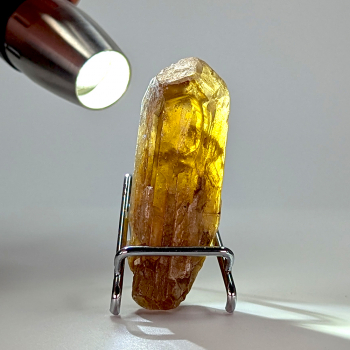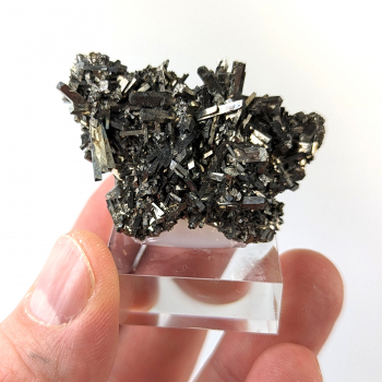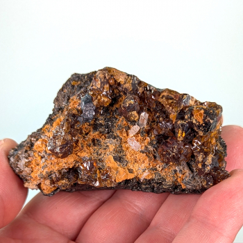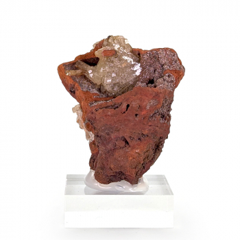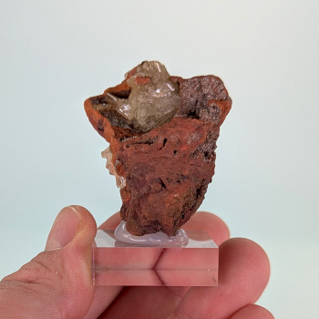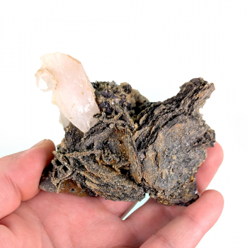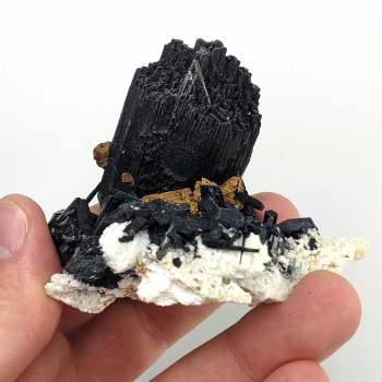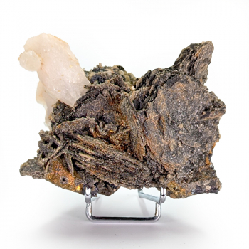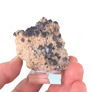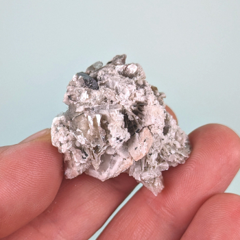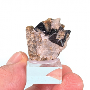 Intéressant spécimen de polytionite (groupe des micas) portant quelques cristaux noirs d'aegirine.Cet échantillon provient du Mont Saint-Hilaire, situé dans la région du Québec au Canada.Il mesure 3,3 x 2,8 x 2 cm.Le poids de ce spécimen est de 12,6 grammes.Photos supplémentaires et commande en...