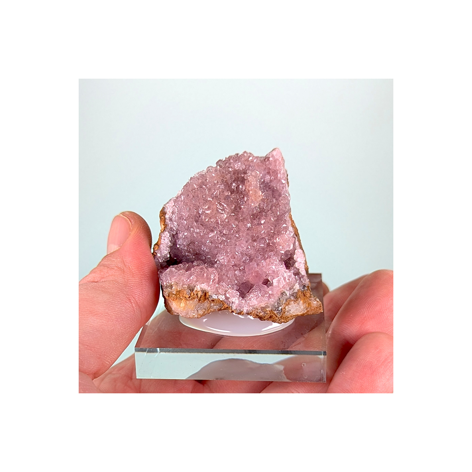 Échantillon de smithsonite cobaltifère avec des petits cristaux brillants.