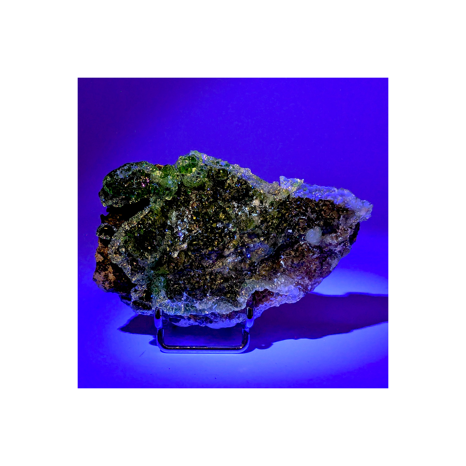 Cette pièce est réactive aux uv, jaune sous uv long et verte sous uv court.