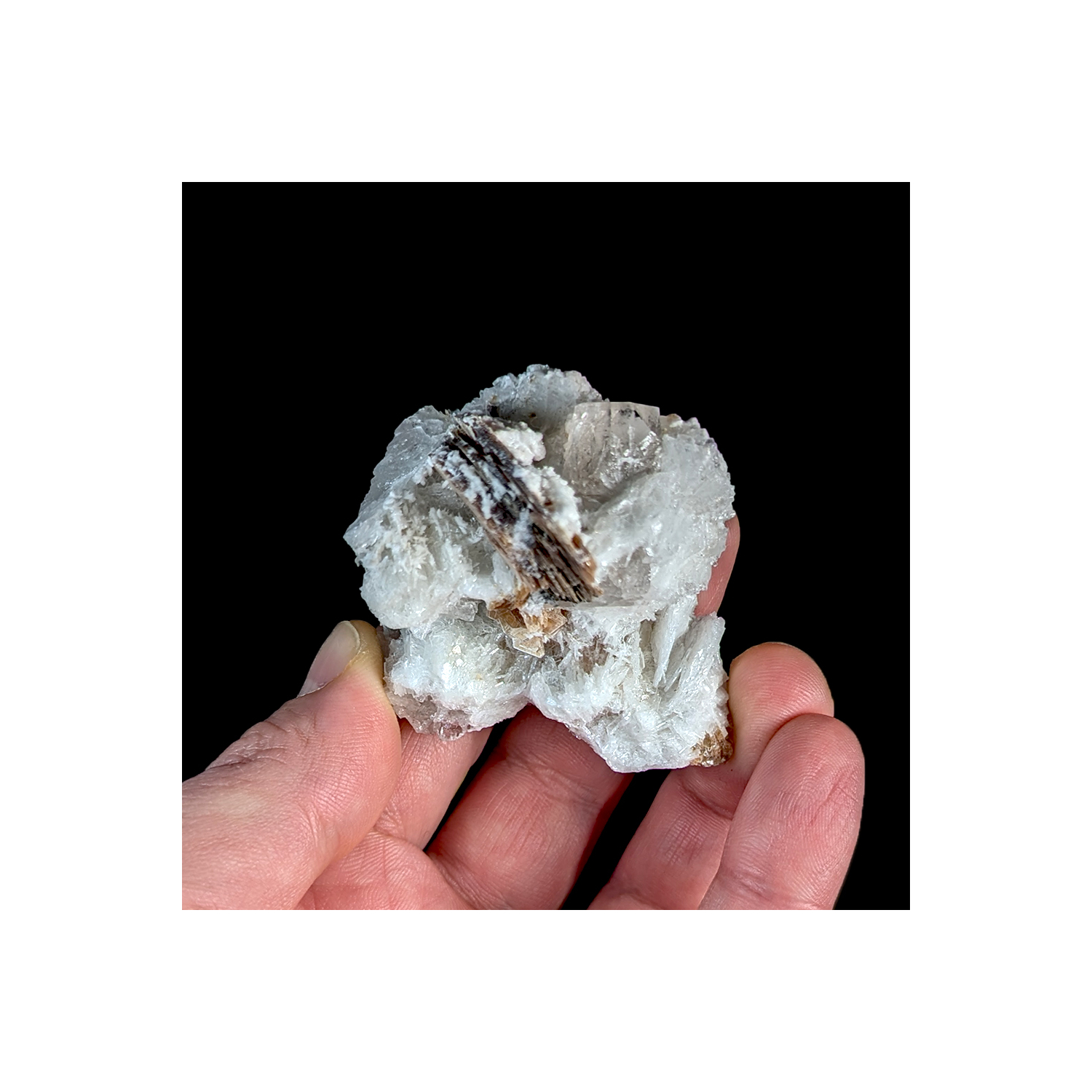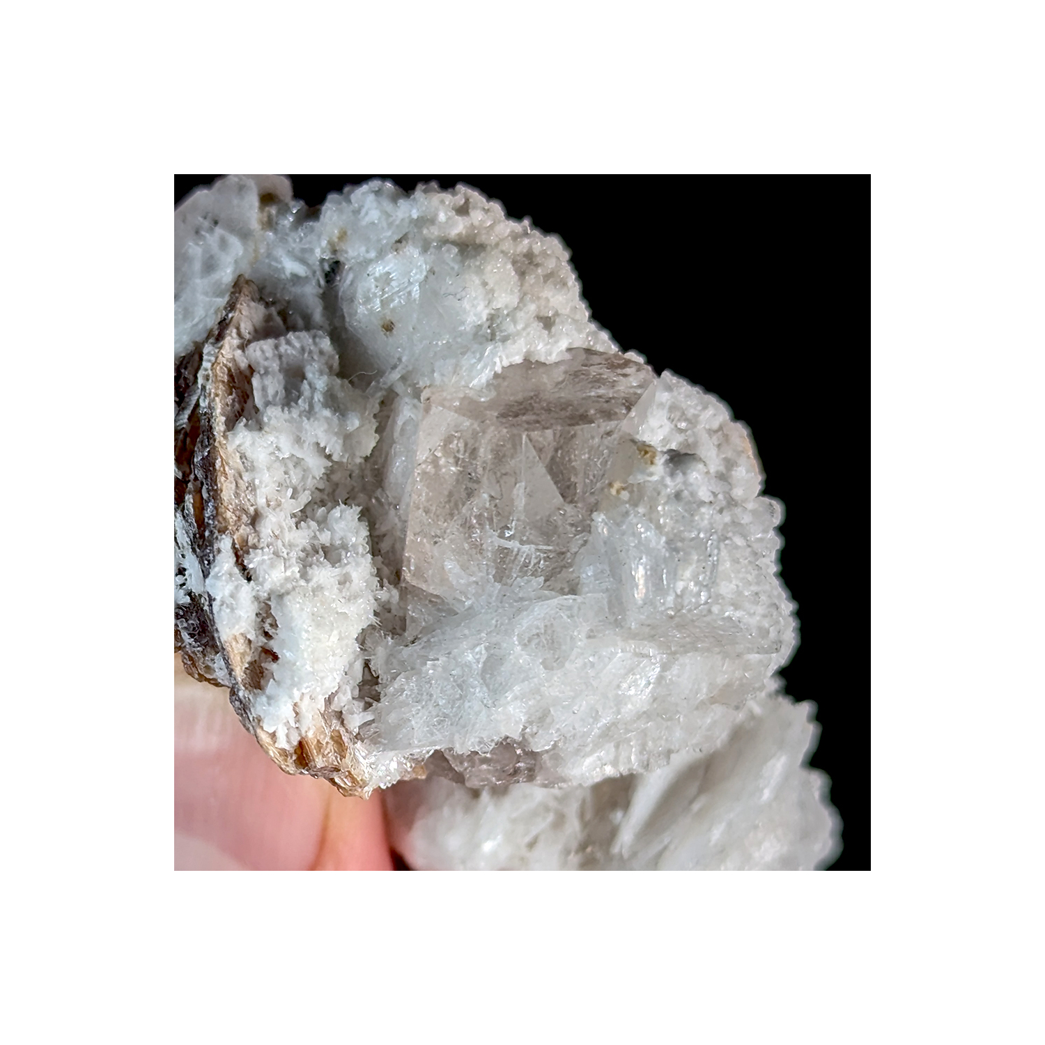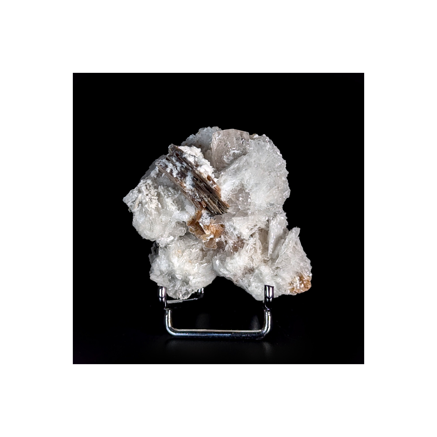 Pièce intéressante associant une topaze, des cristaux de muscovite, sur une gangue de cleavelandite.