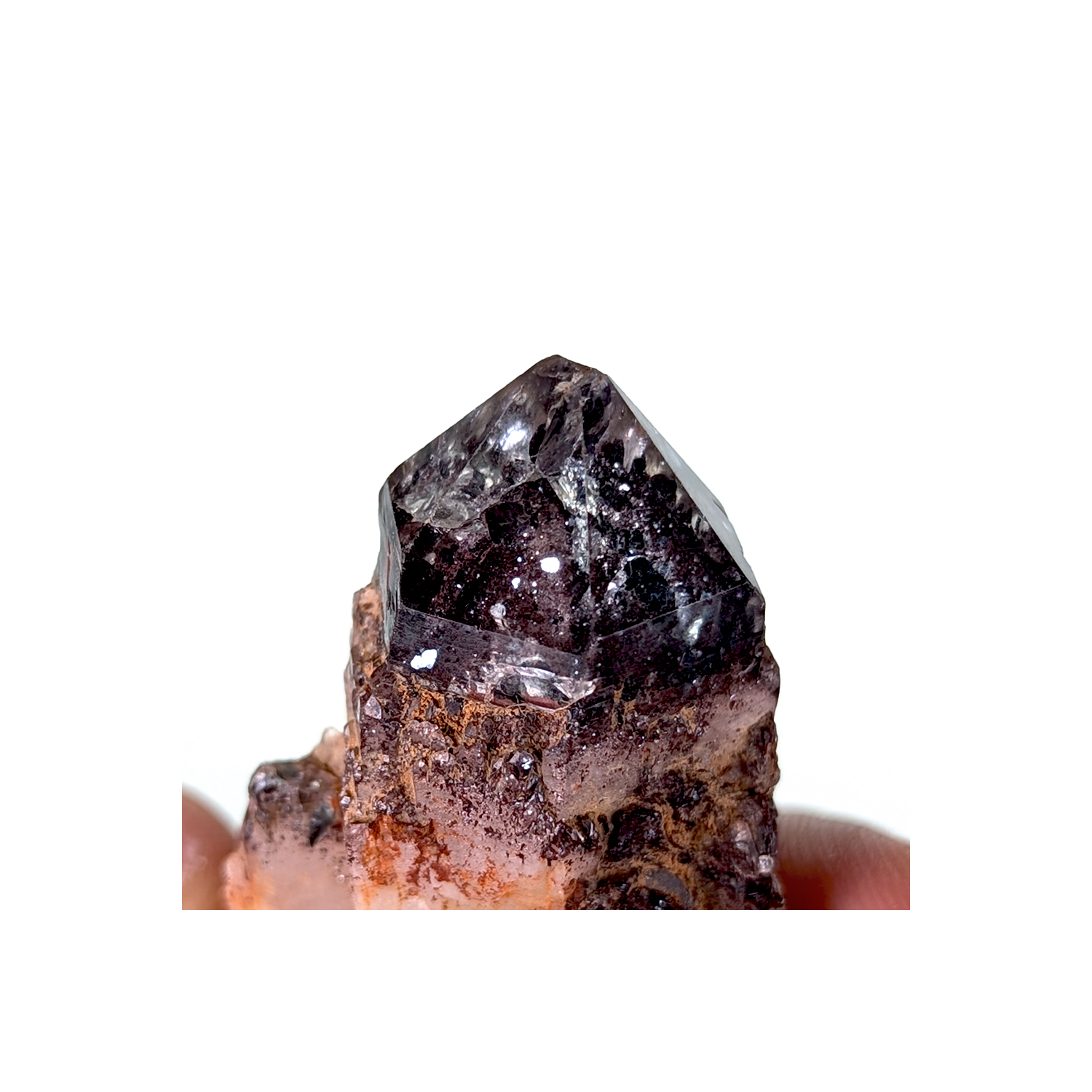 Cristal de quartz contenant un fantôme bien marqué par des inclusions d'hématite en paillette.