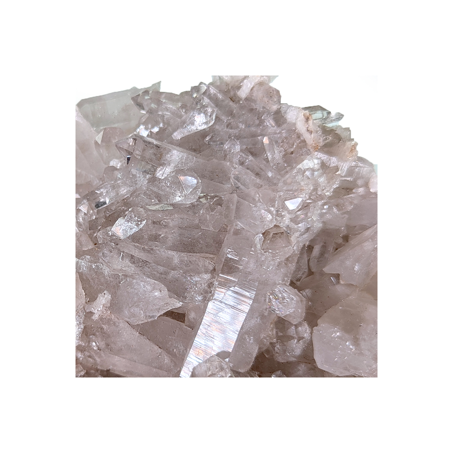 Plaque de cristaux de quartz transparents et brillants, avec une cristallisation d'albite.
