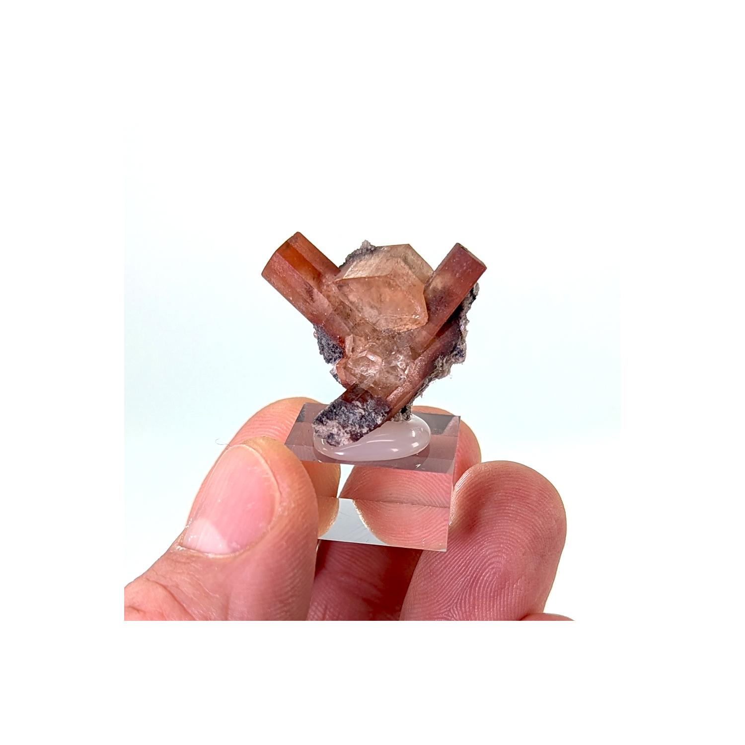 Esthétique miniature présentant trois cristaux terminés de topaze.