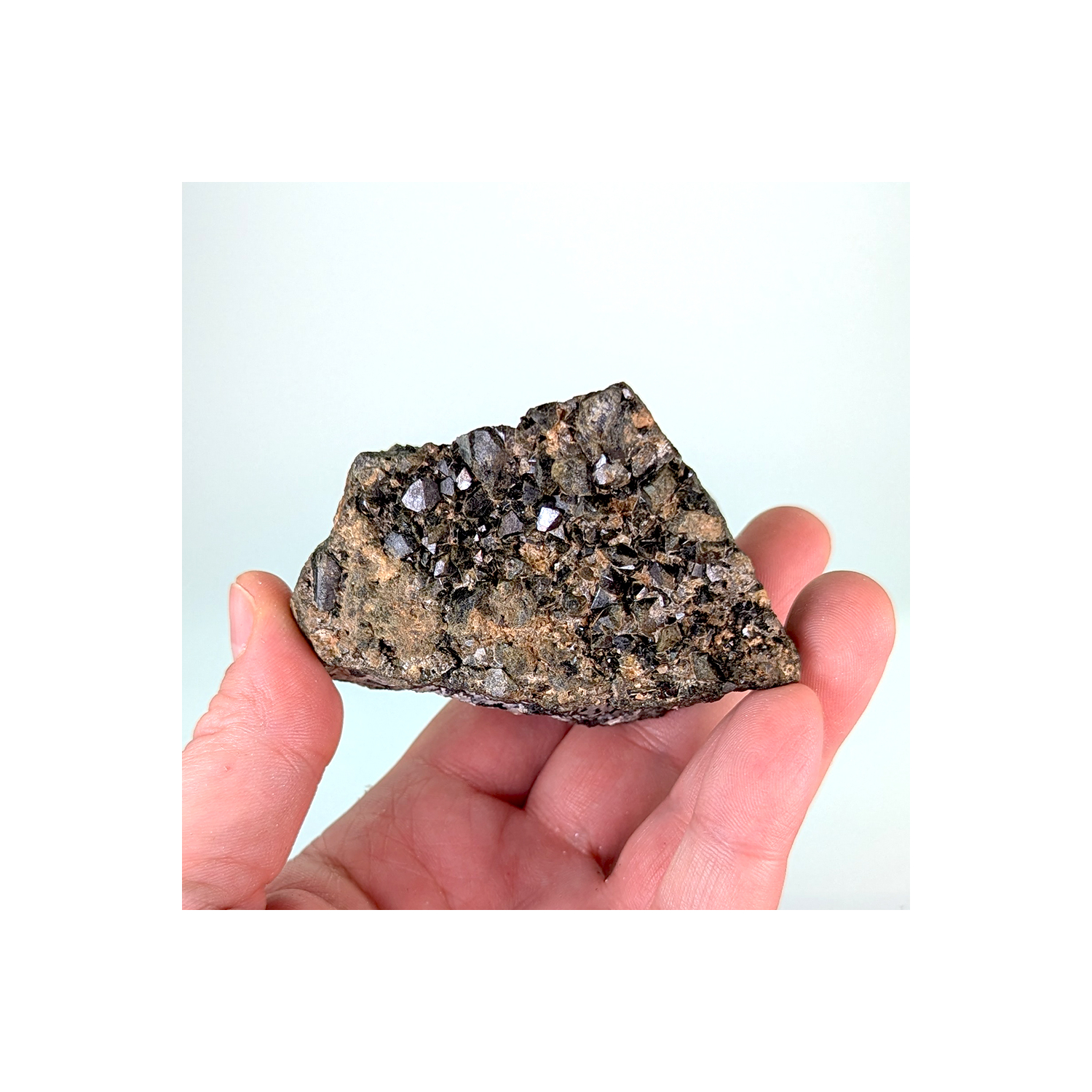 Échantillon pour minéralogiste, portant des cristaux de diopside sur une gangue de diopside brut et de quartz.