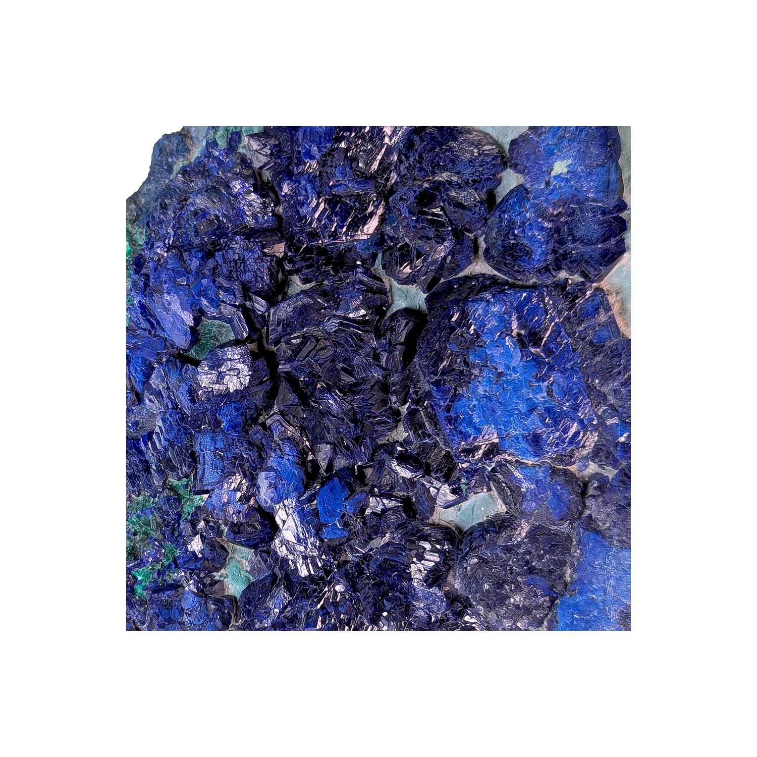 Plaque offrant un beau contraste entre une gangue verte riche en malachite et une double cristallisation d'azurite offrant deux nuances de bleu.