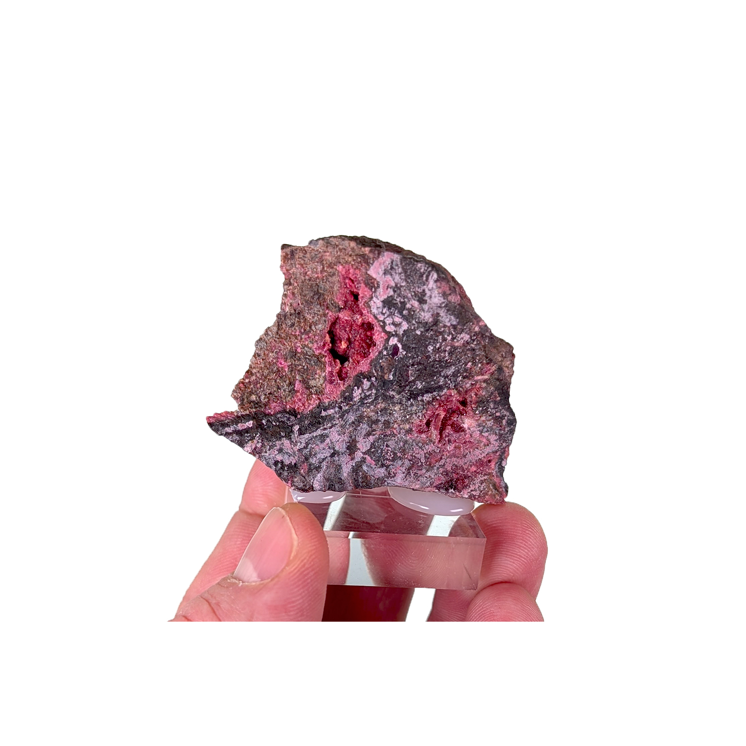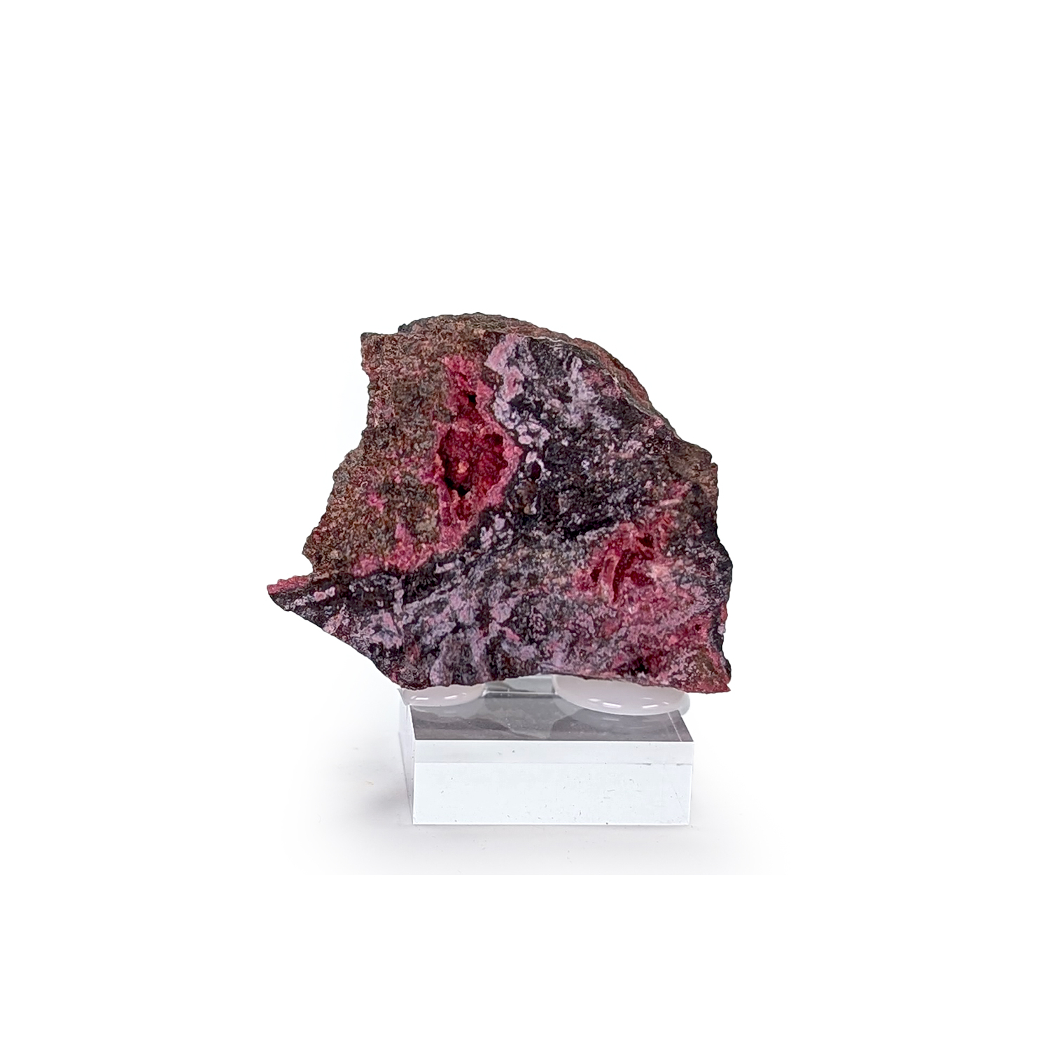 Rare échantillon de köttigite colbaltifère, un arséniate de zinc, sur une gangue de smaltite (arséniure de cobalt)
