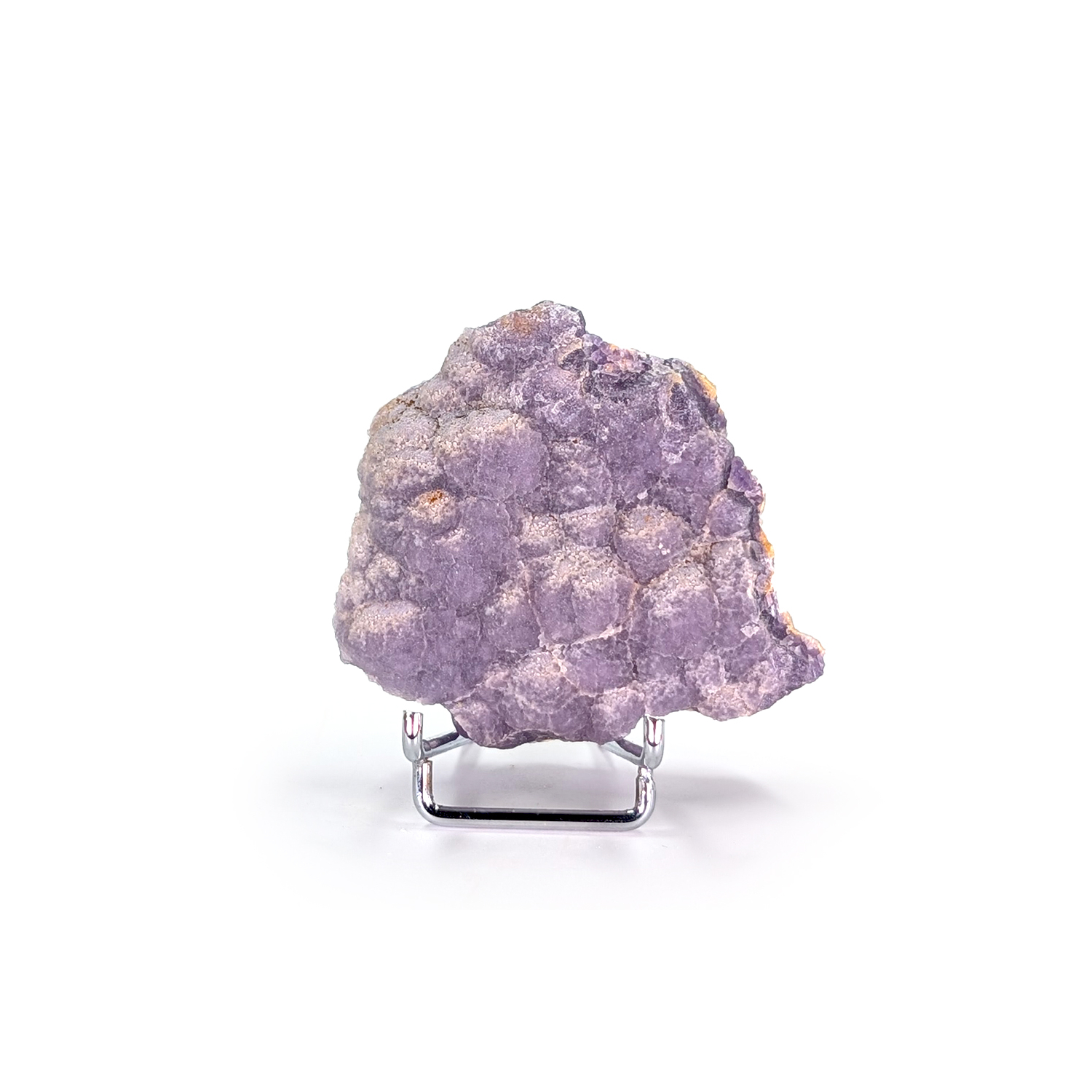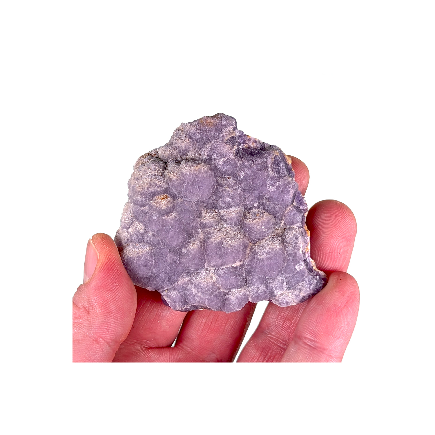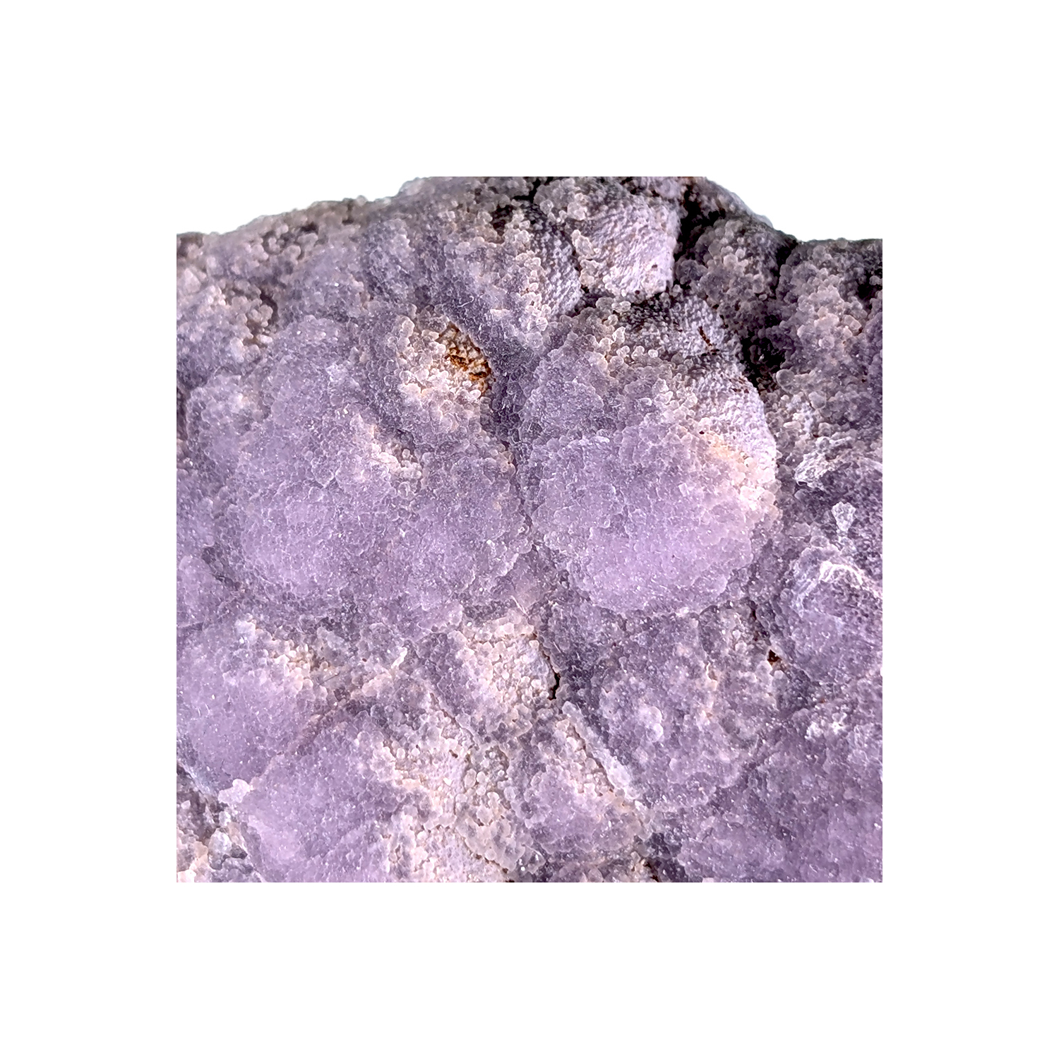Échantillon de fluorite violette provenant de la mine de Maine-Reclesne, avec une cristallisation d'aspect mamelonné typique de ce gisement.