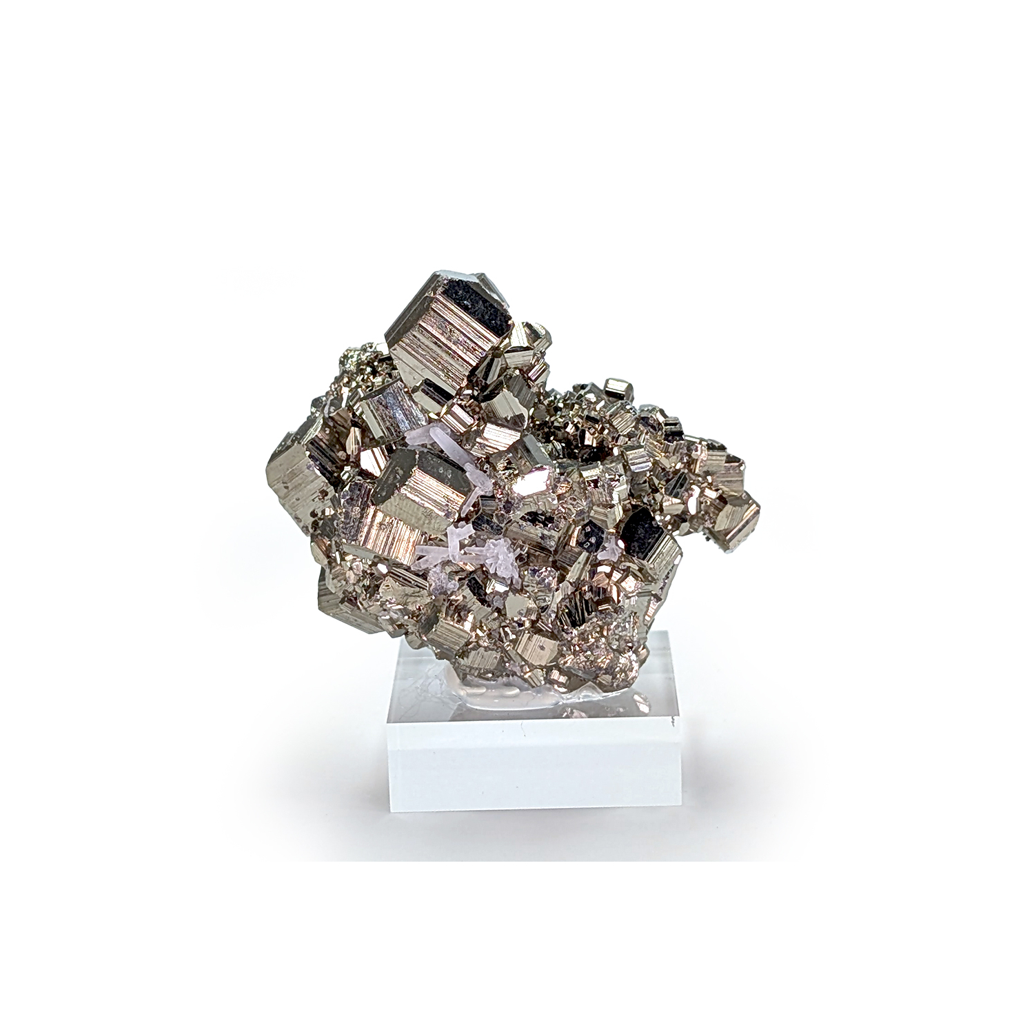 Agréable échantillon de pyrite très brillante, avec des cristaux striés.