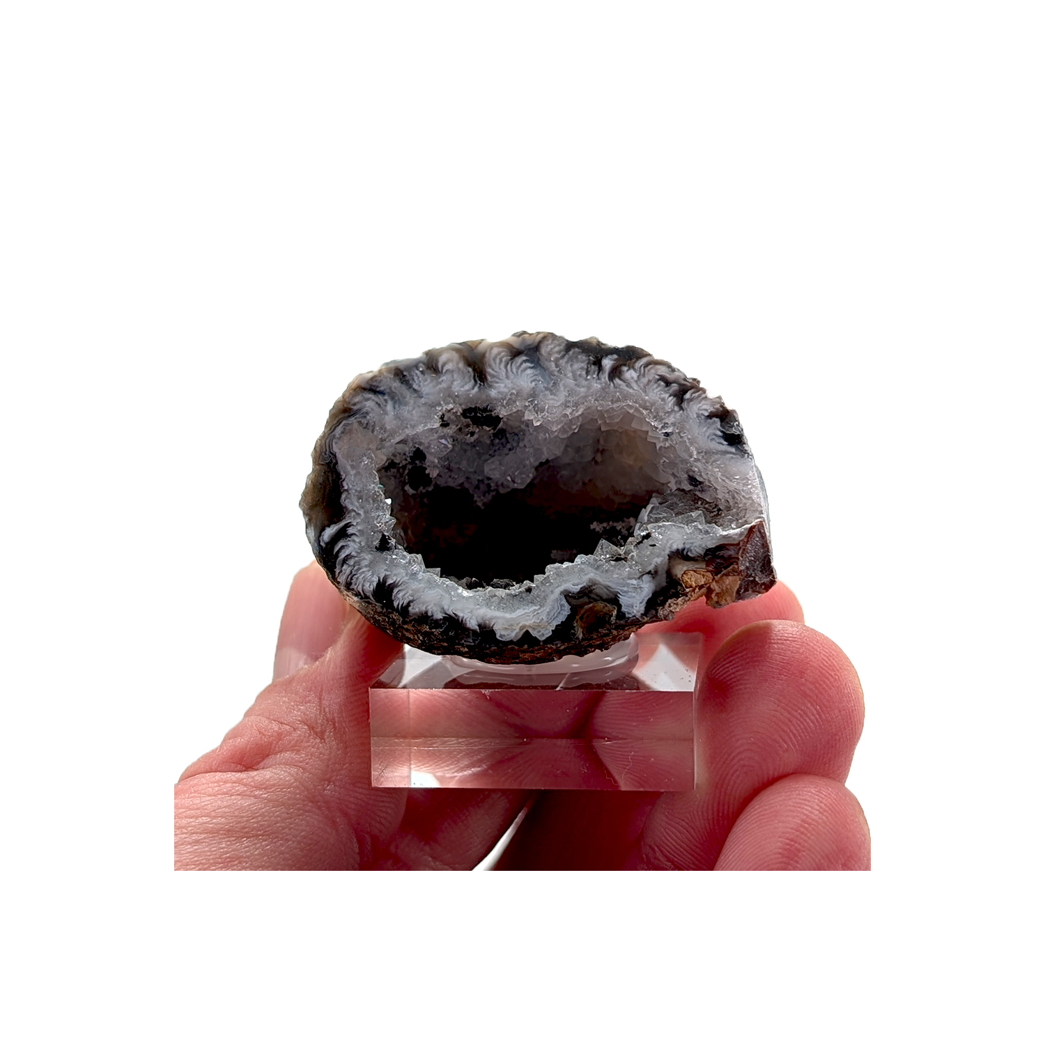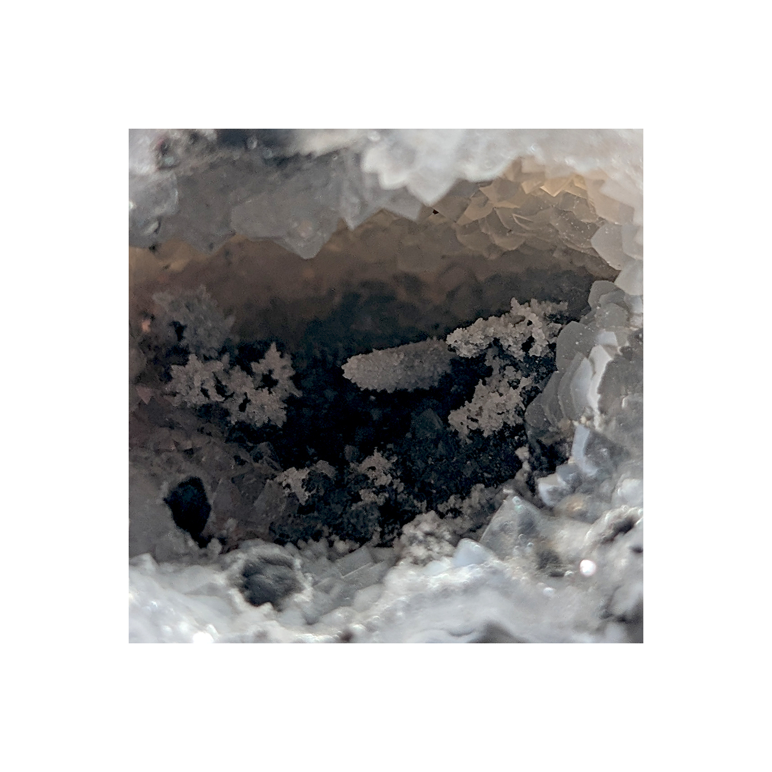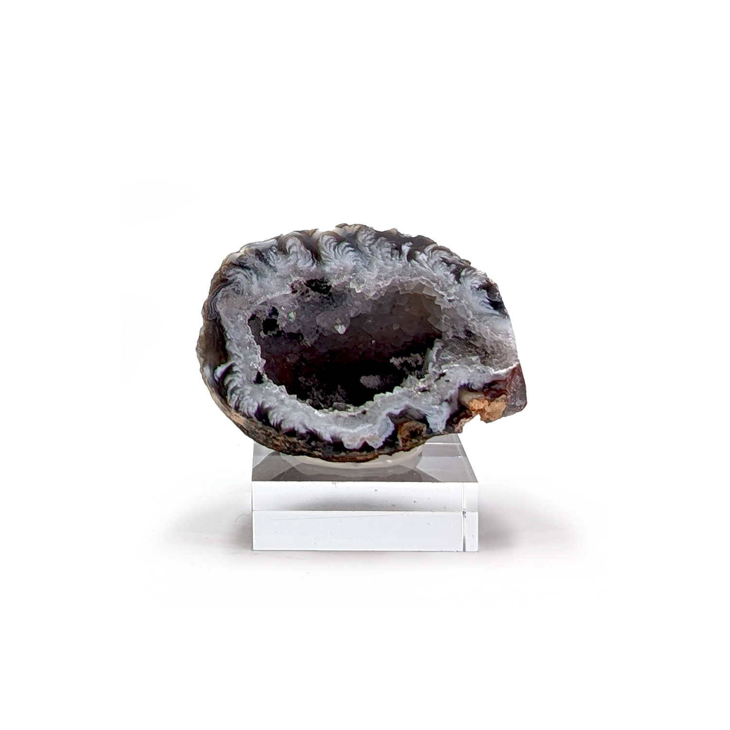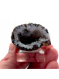 Difficile de faire plus classique qu'une géodinos (petite géode d'agate/quartz), mais celle ci a un petit trésor cristallisé caché dedans.