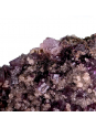 Plaque de fluorite violette (traces de jaune à cœur), partiellement recouverte par des cristaux de calcite.