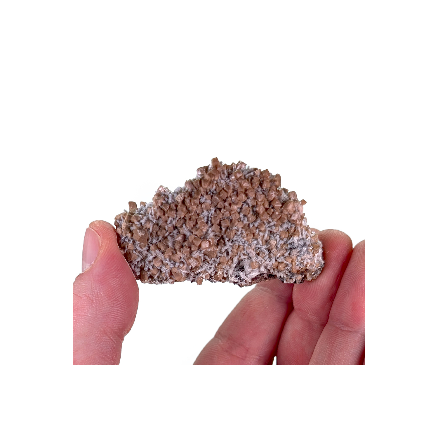 Rare échantillon de poldervaartite avec des cristaux bruns mêlés à des fibres blanches de bultfonteinite.