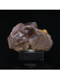 Cristaux de Sphalérite à l’aspect dépoli, sauf à un endroit où il est très gemme. L’ensemble du spécimen laisse passer la lumière au travers. La couleur jeune orange ressemble à du feu. Superbe pièce provenant de la mine Alvina en Espagne.