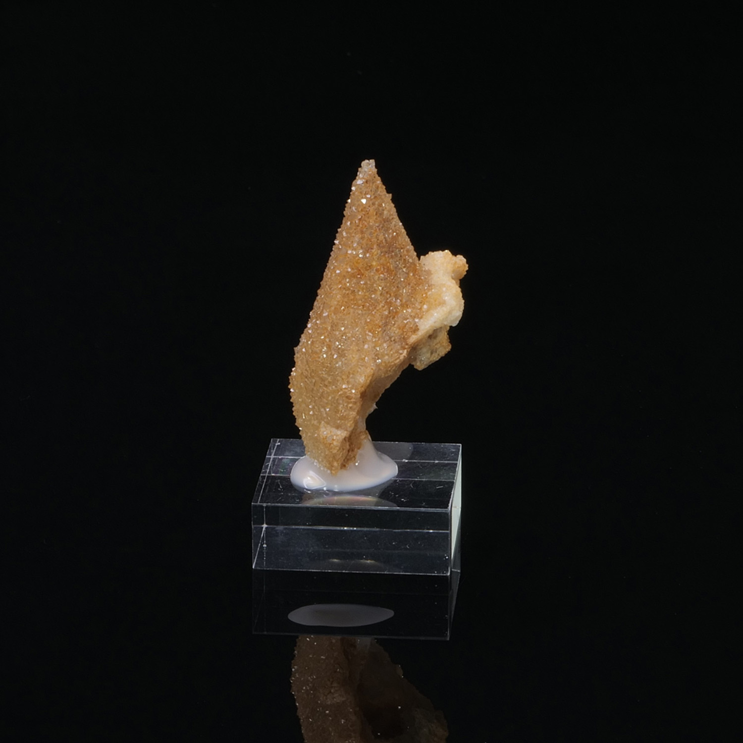 Périmorphose de Quartz après Calcite provenant du filon Juliette en Ardèche, France. La structure de la Calcite est remarquablement conservée, remplacée par des Quartz d’une belle brillance. Pièce creuse, la Calcite n’existe plus, seuls les Quartz sont présents et ont remplacé la surface des cristaux de Calcite.