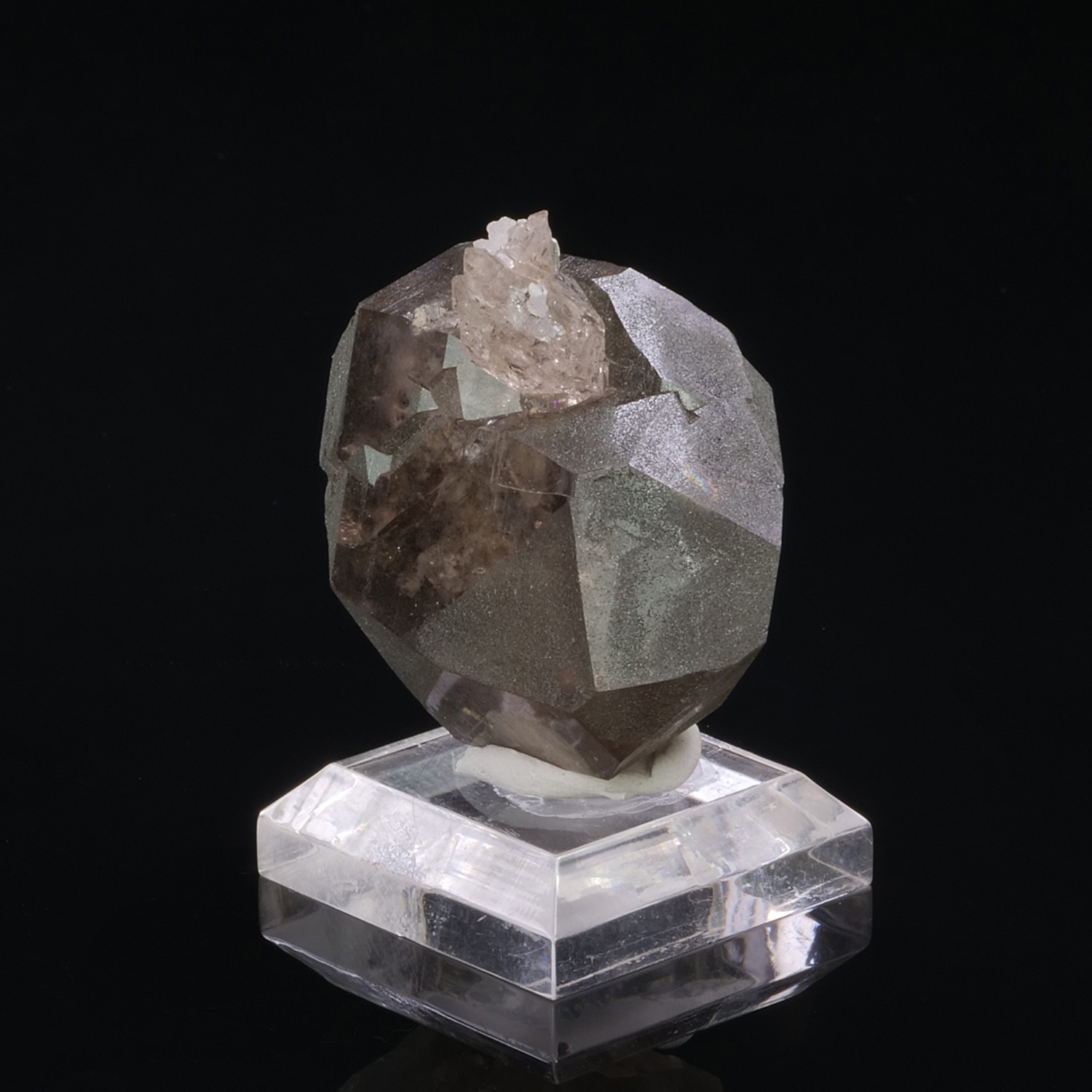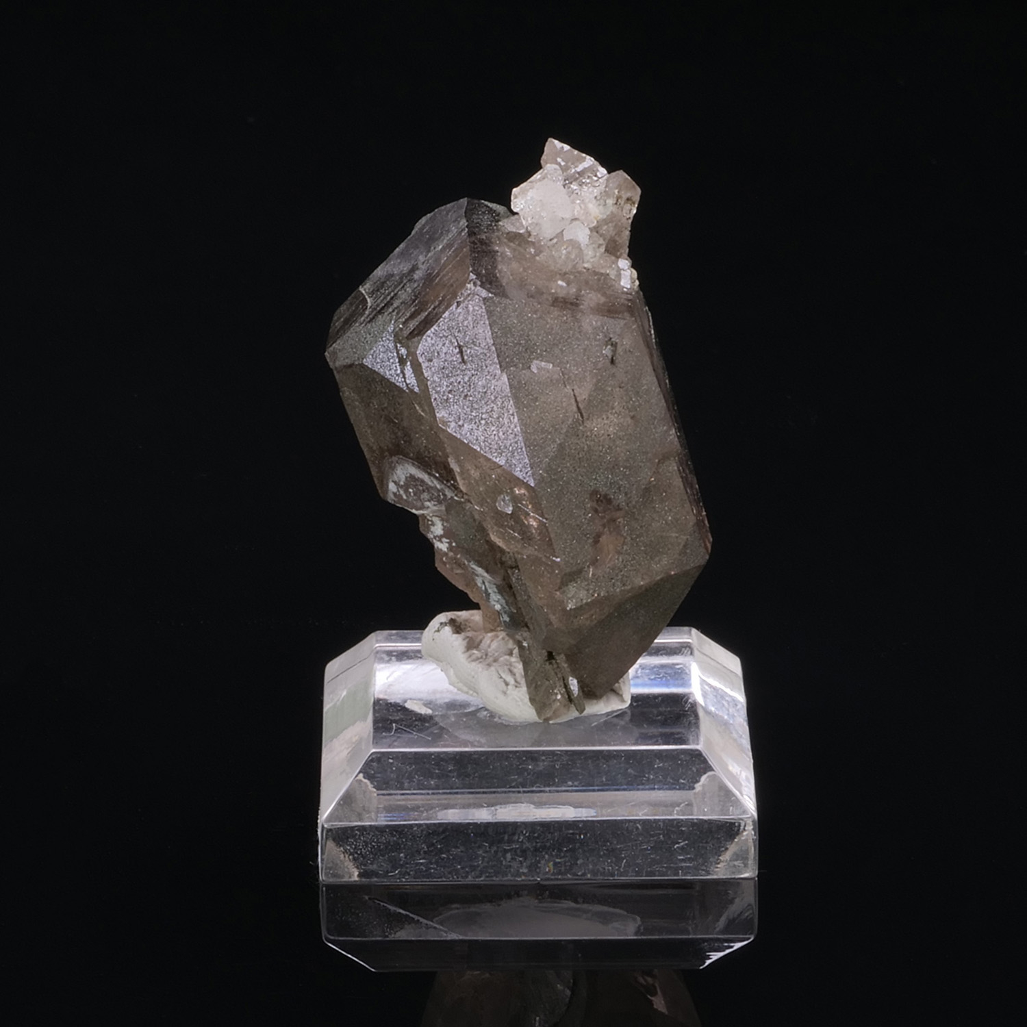 Quartz Gwindel sucre, également appelé Gwindel fermé, fumé et biterminé provenant des Rochassiers, Mont-Blanc, France. Il est légèrement chloriteux aux pointes.