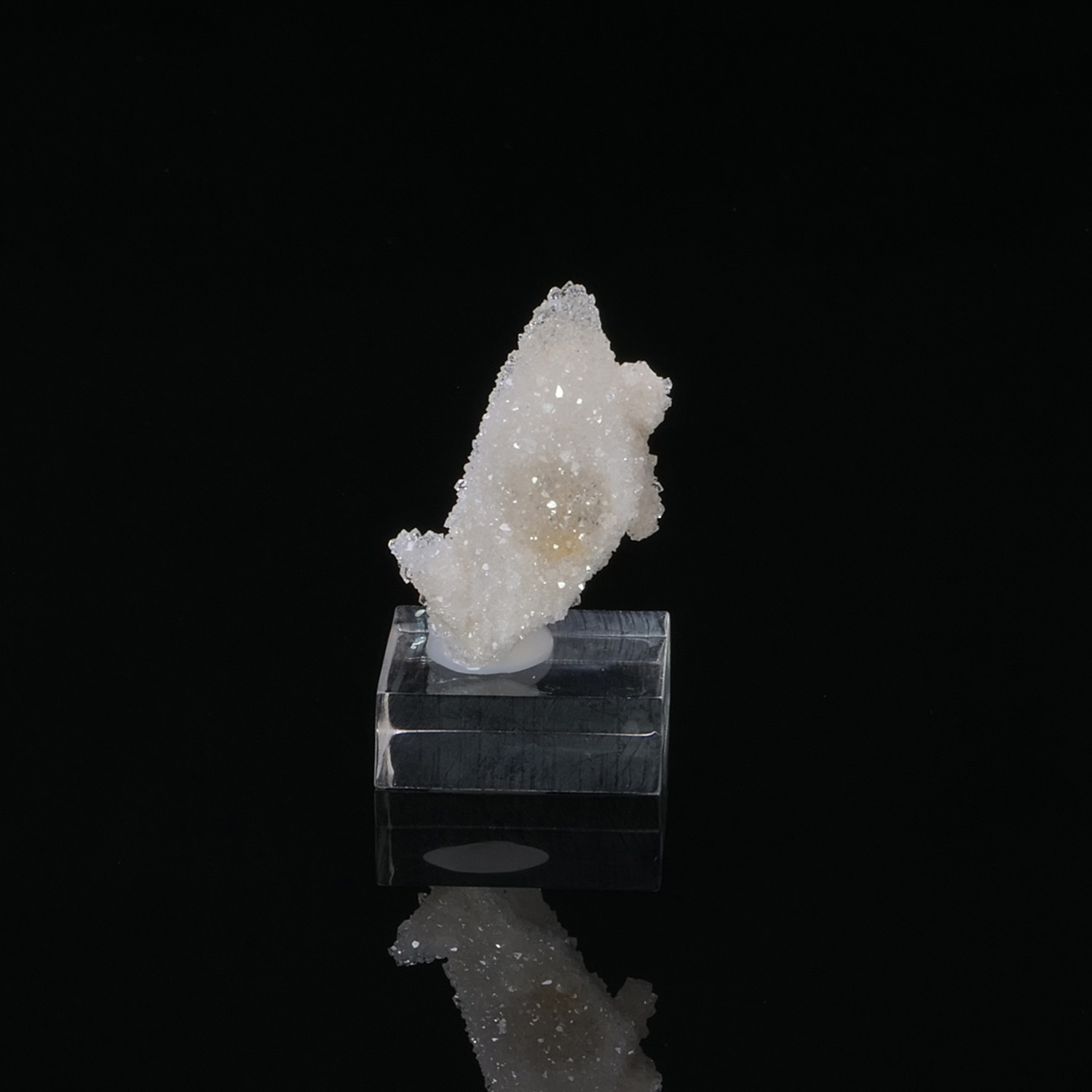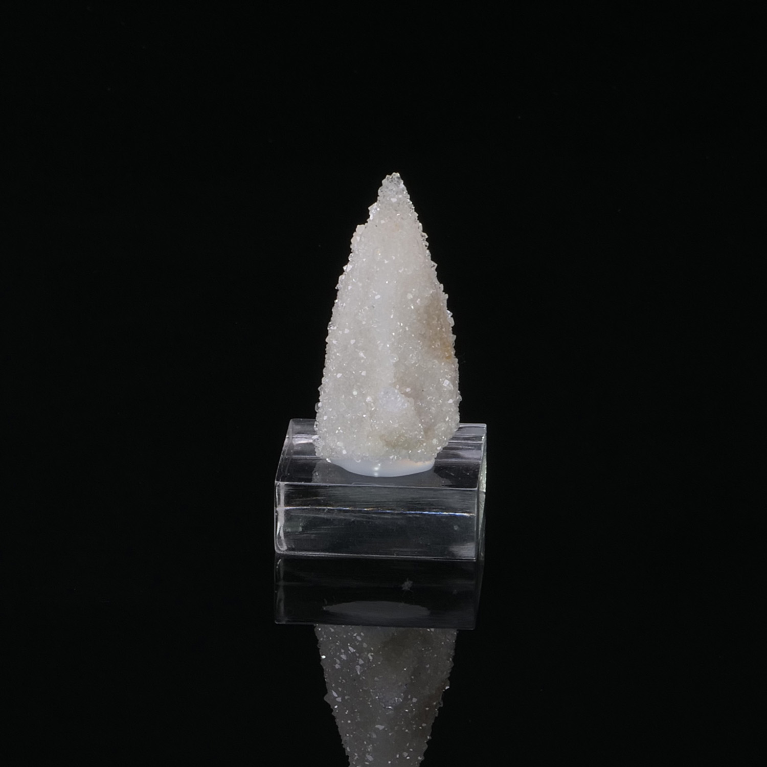 Périmorphose de Quartz après Calcite provenant du filon Juliette en Ardèche, France. La structure de la Calcite est remarquablement conservée, remplacée par des Quartz d’une belle brillance. Pièce creuse, la Calcite n’existe plus, seuls les Quartz sont pr