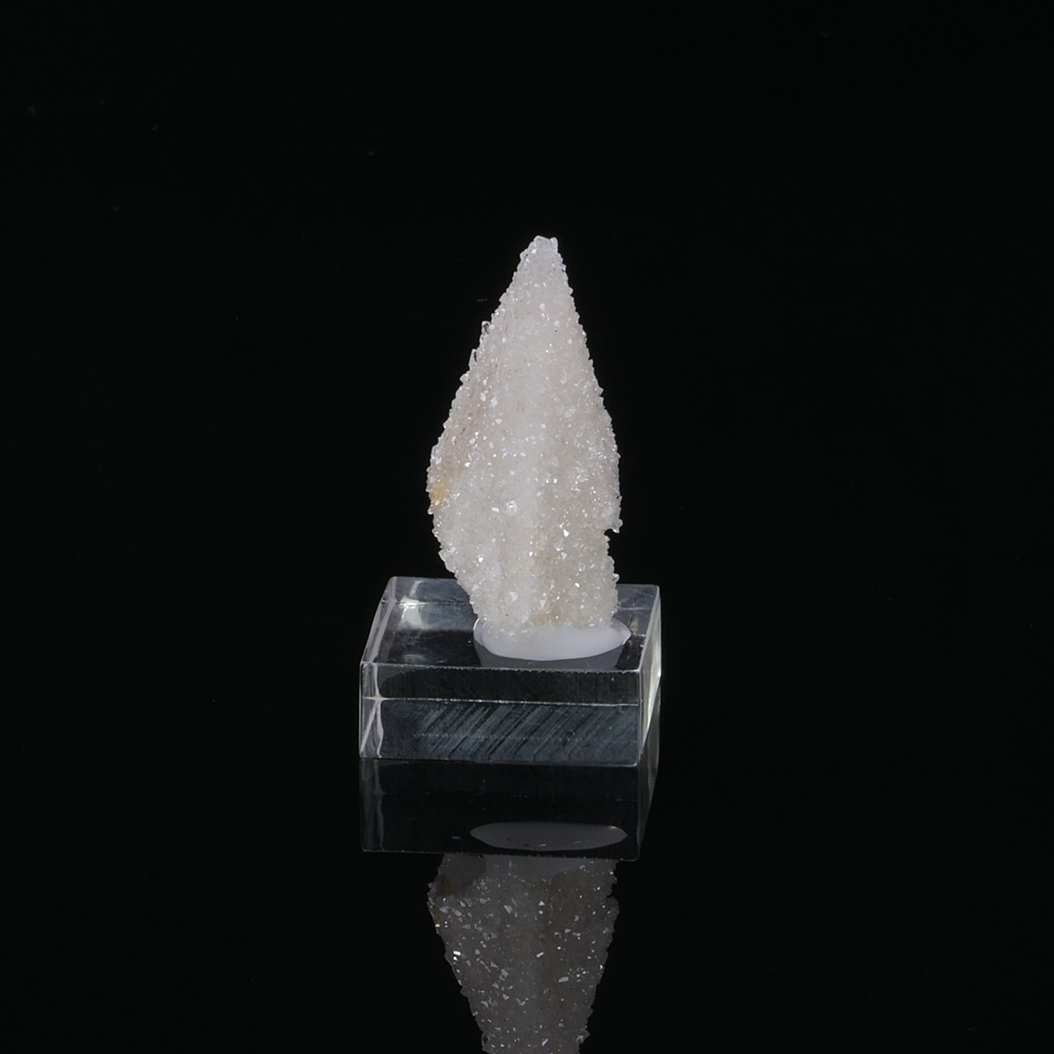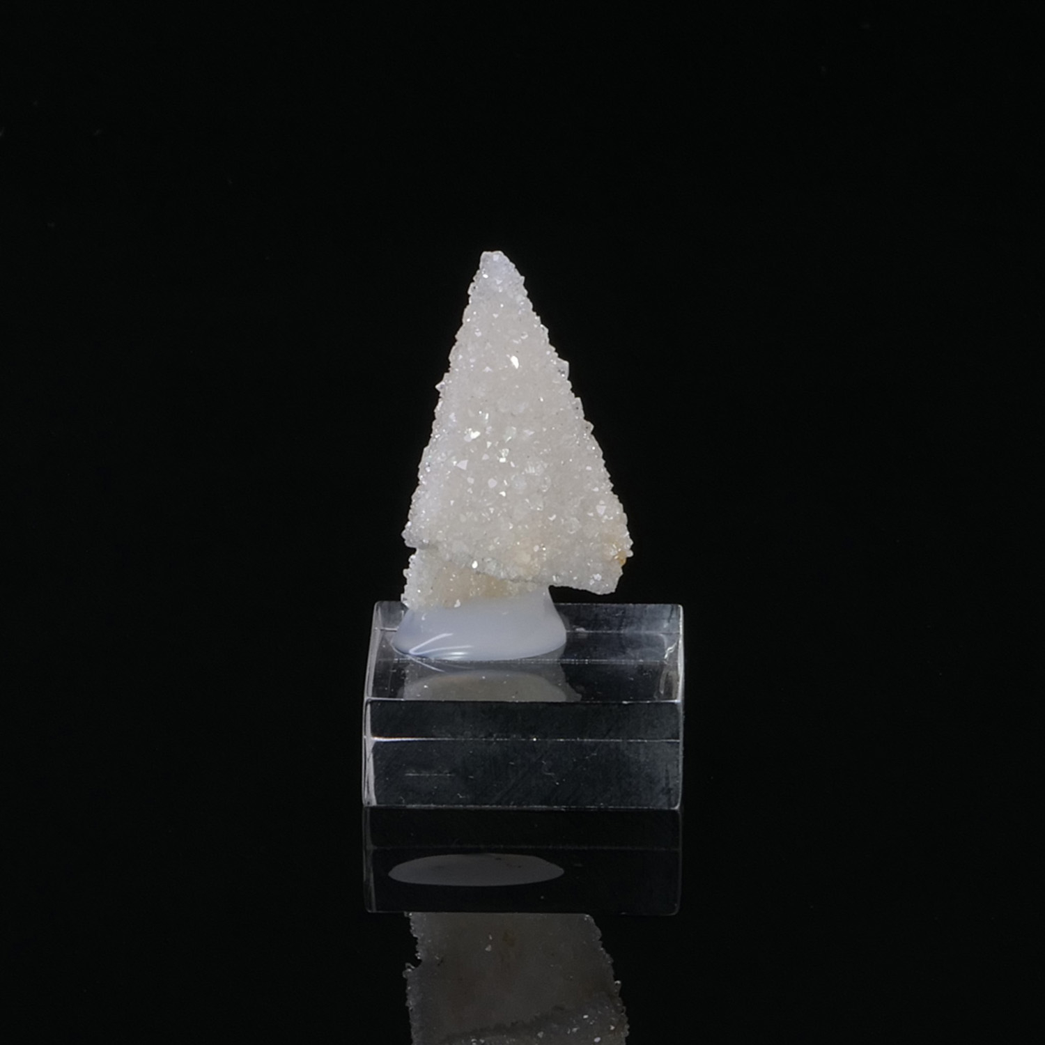 Périmorphose de Quartz après Calcite provenant du filon Juliette en Ardèche, France. La structure de la Calcite est remarquablement conservée, remplacée par des Quartz d’une belle brillance. Pièce creuse, la Calcite n’existe plus, seuls les Quartz sont pr