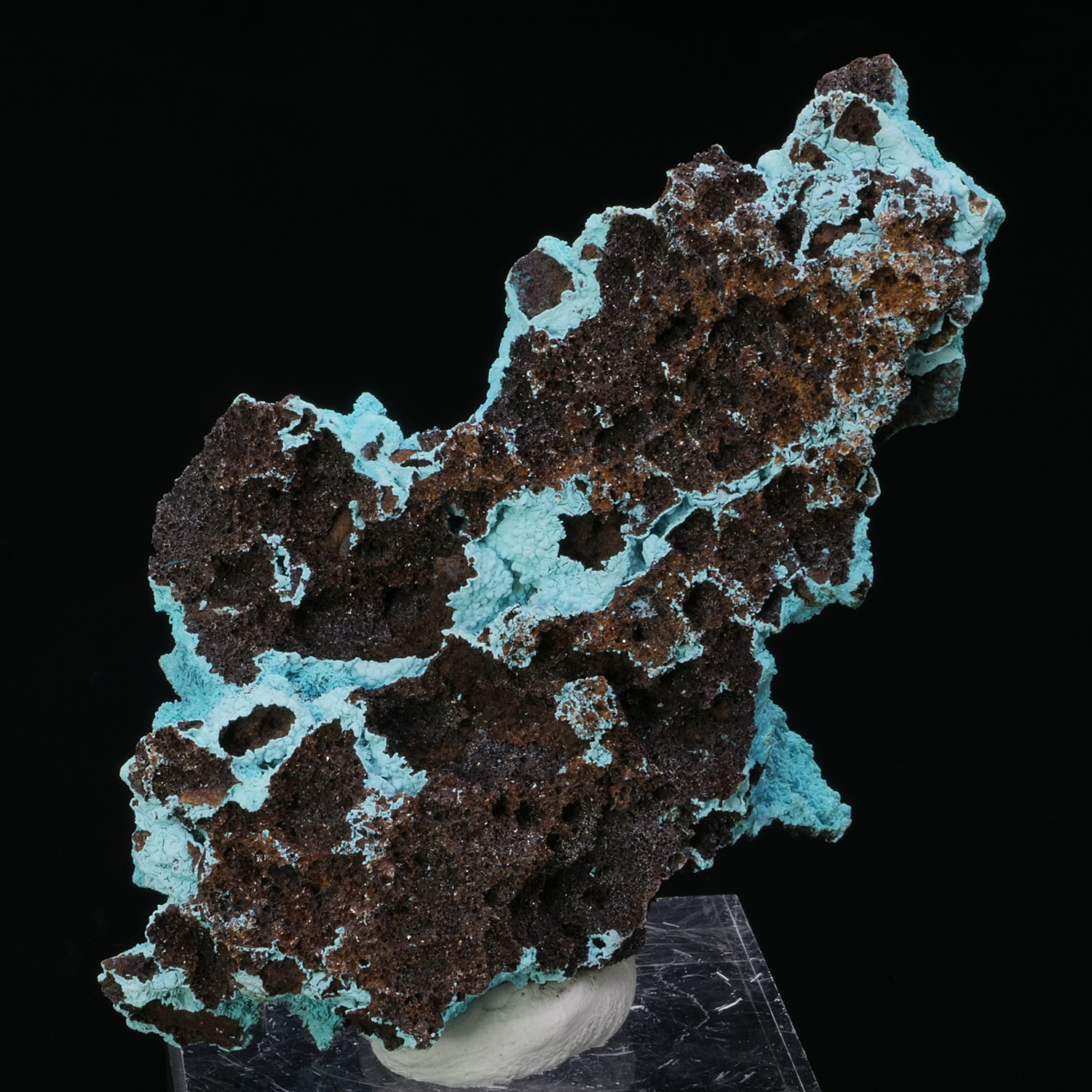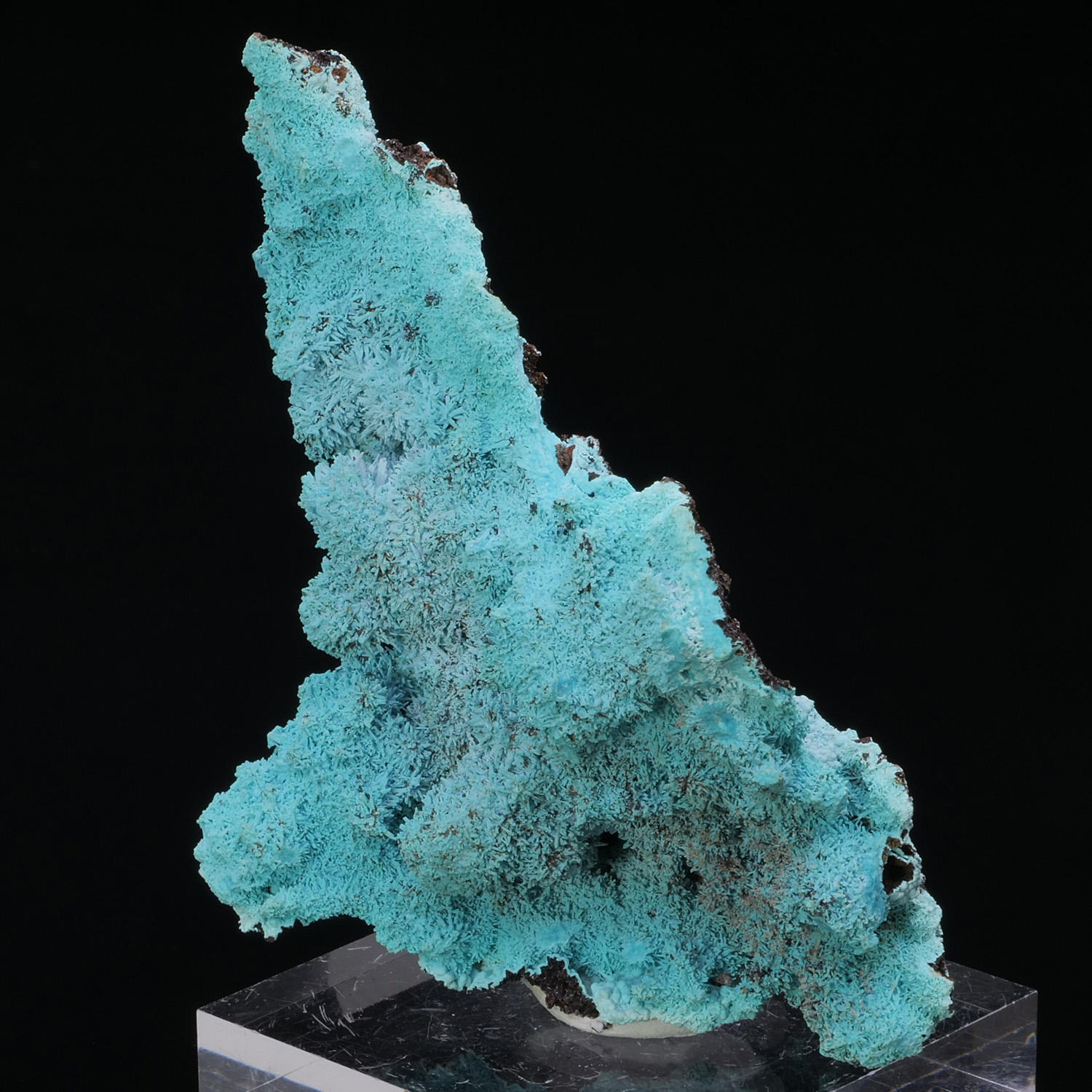 Fins cristaux de Chrysocolle bleu turquoise sur gangue très fine et provenant de la mine Lupoto en RD Congo.