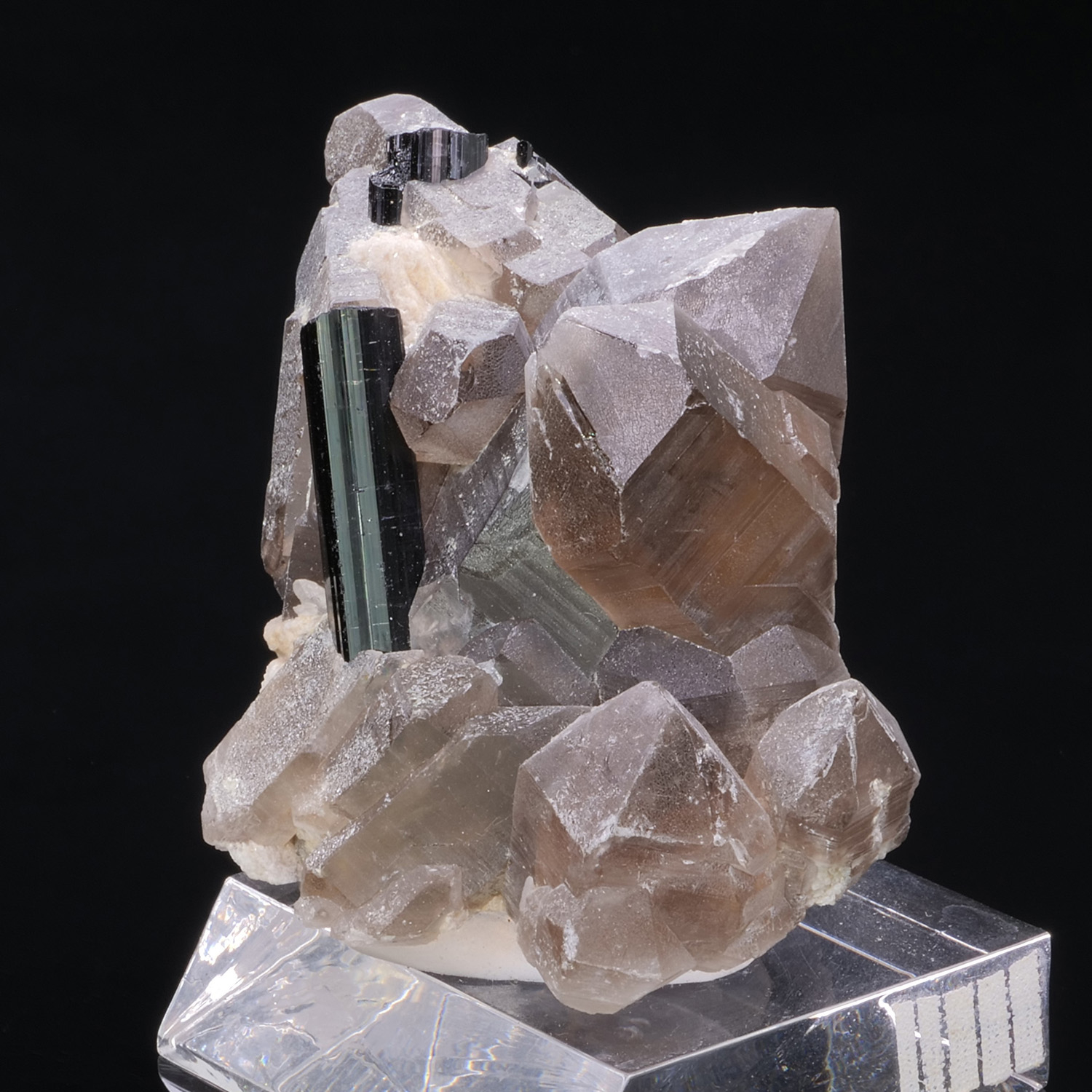 Schorl noir sur Quartz légèrement fumés provenant de Paprok en Afghanistan.