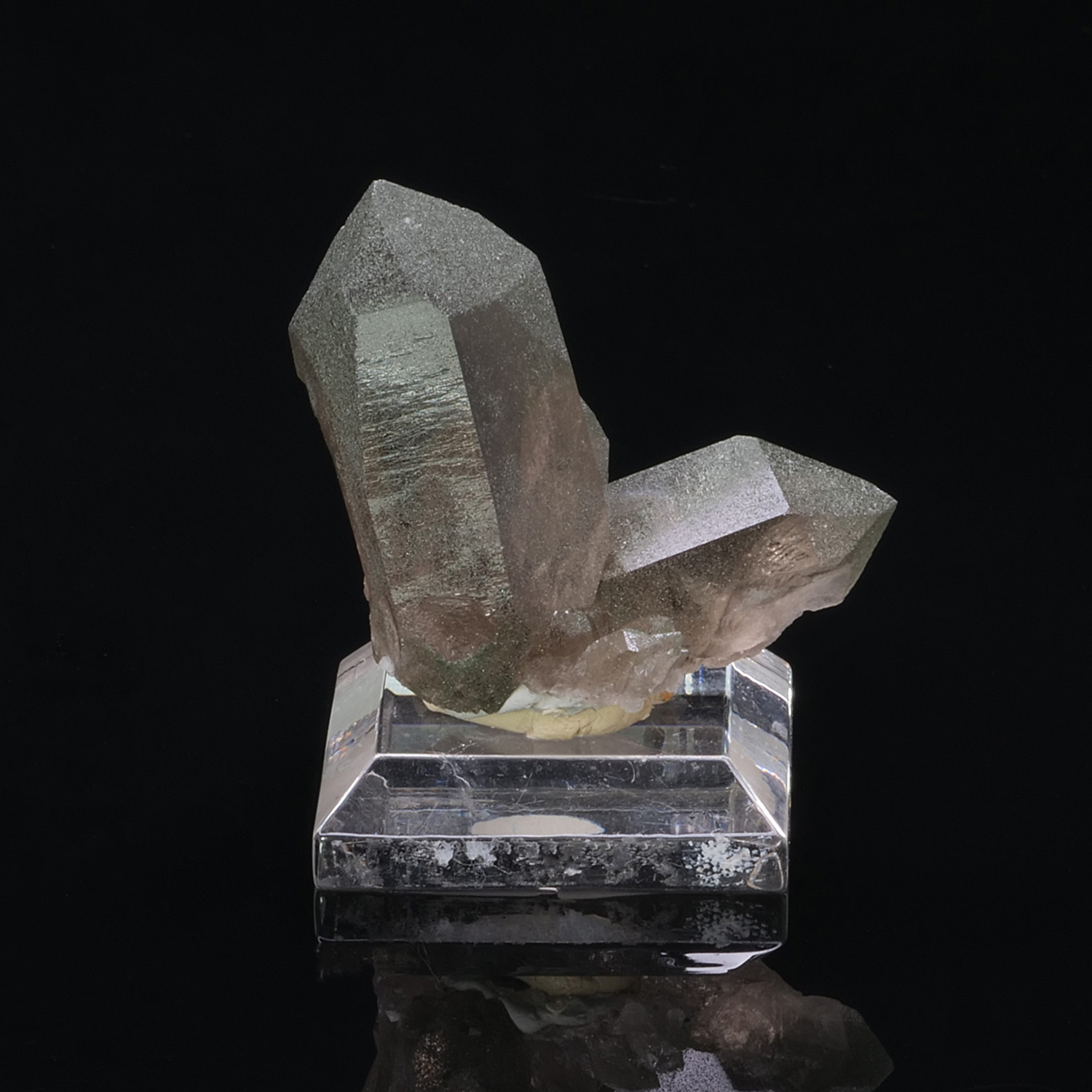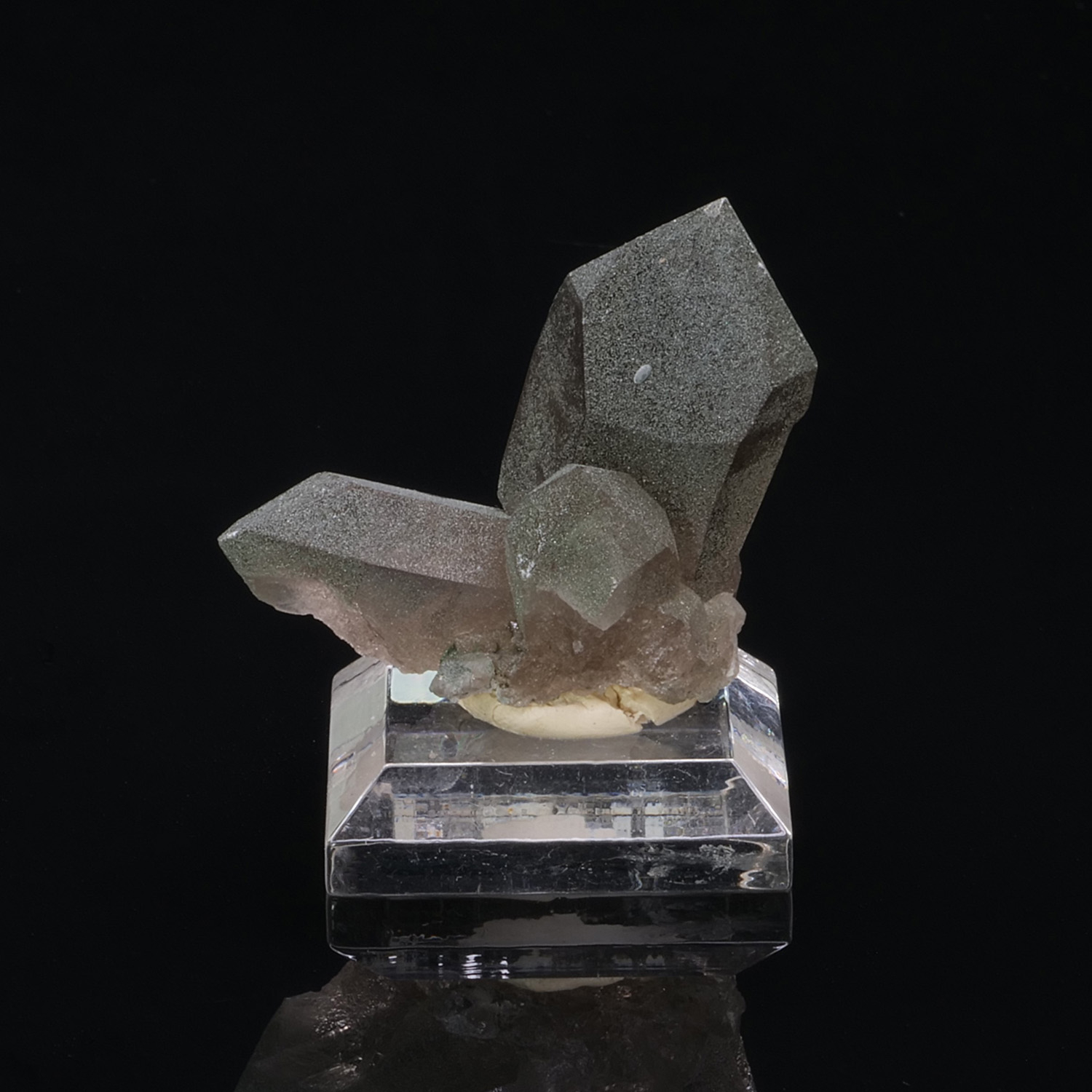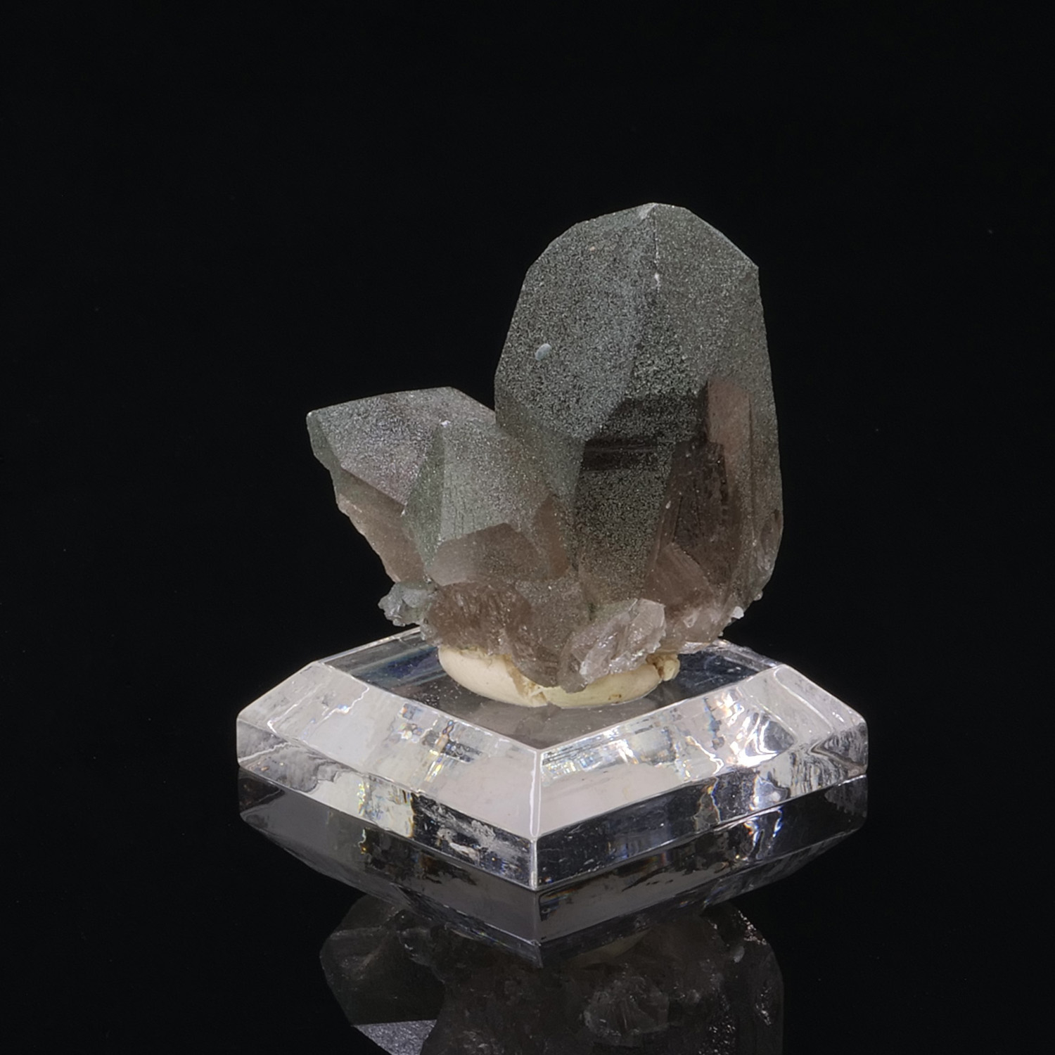 Triple pointes fumées et chlorite provenant des Rochassiers, Mont-Blanc, France.
