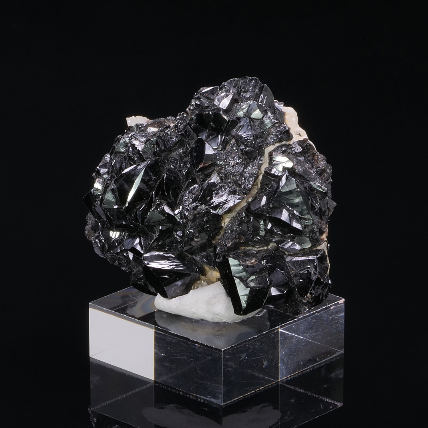 Cassitérite noir et brillante provenant de la mine Viloco en Bolivie. Les cristaux sont très bien formés.