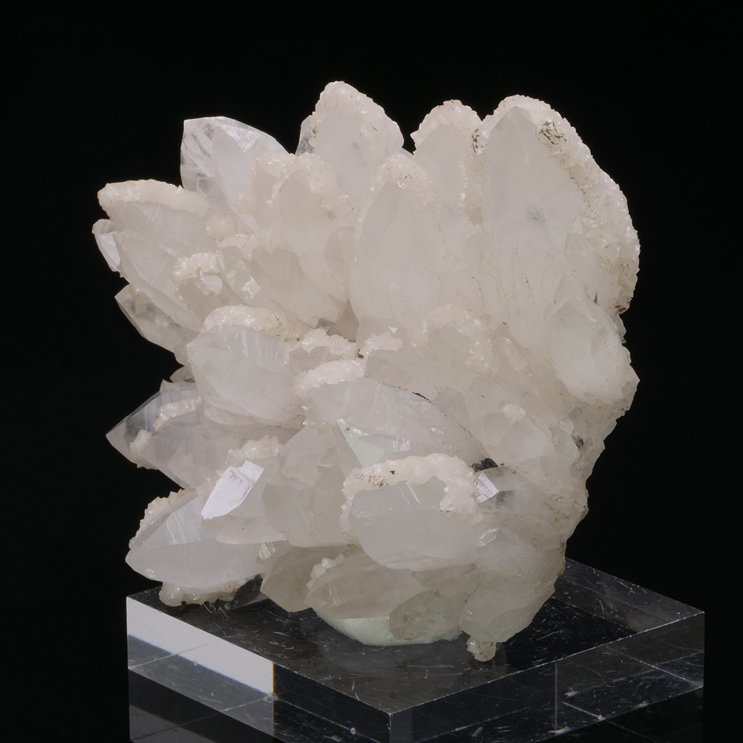 Amas de Quartz surmontés de cristaux de Calcite et quelques touches de Galène au niveau de la base des Quartz. Spécimen provenant de Trepca au Kosovo.