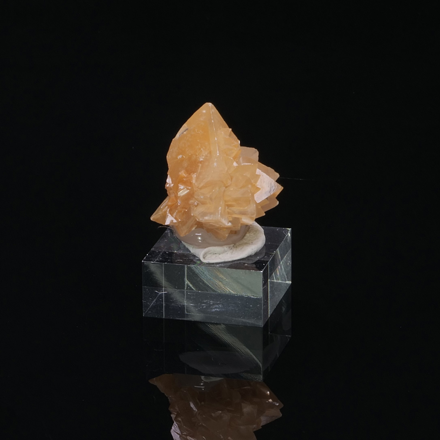 Amas de cristaux de Calcite orange avec fantôme aux bords tranchants. La couleur orange brun clair est brillante, belle qualité pour ces cristaux. Spécimen provenant de Wenshan en Chine.