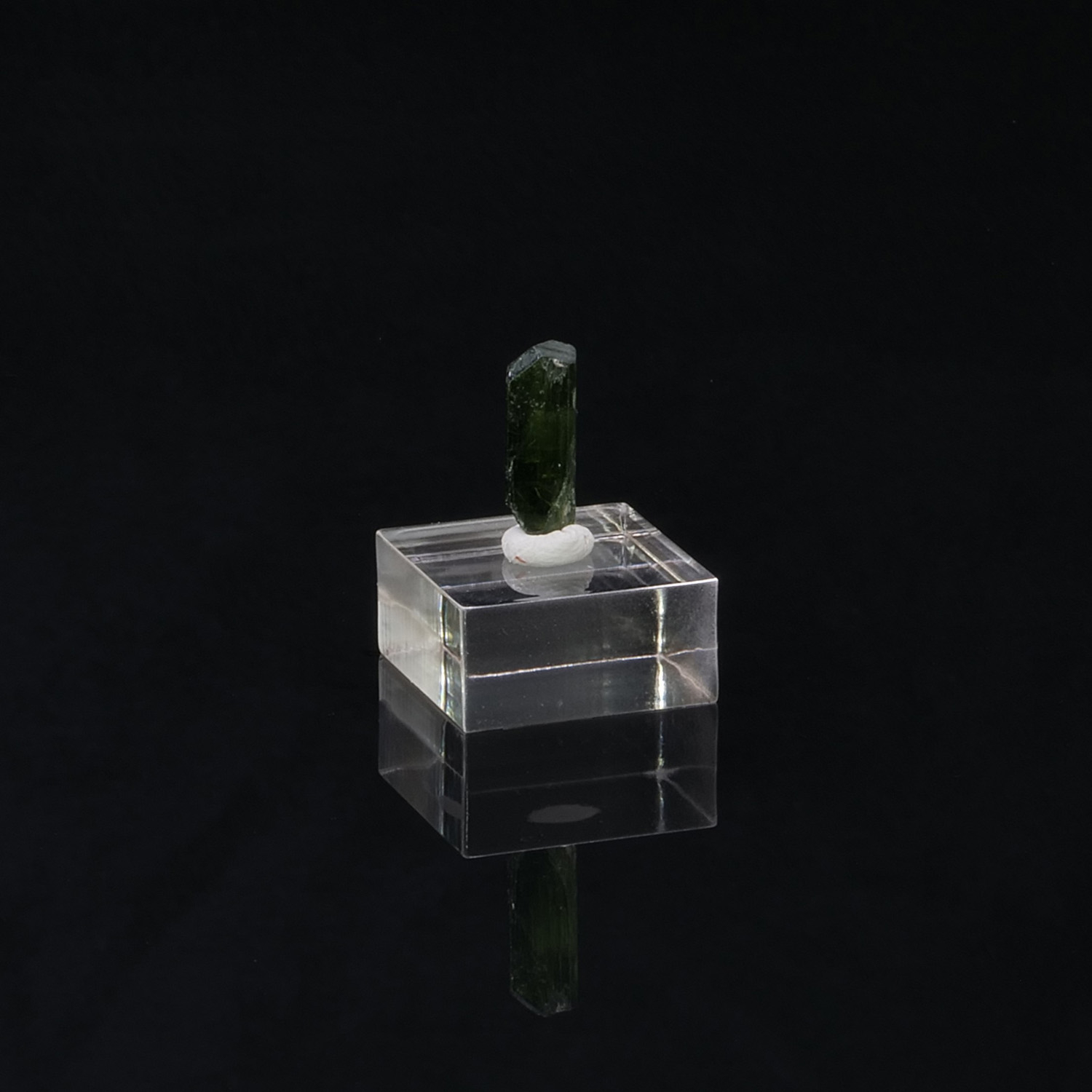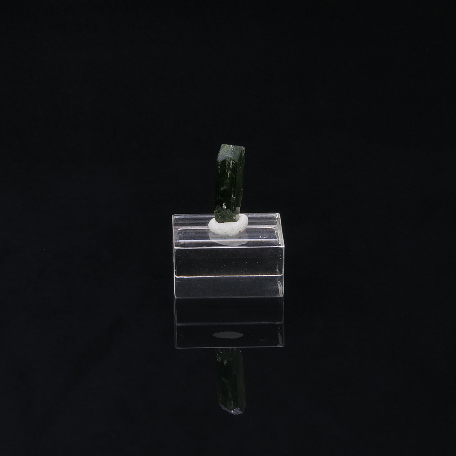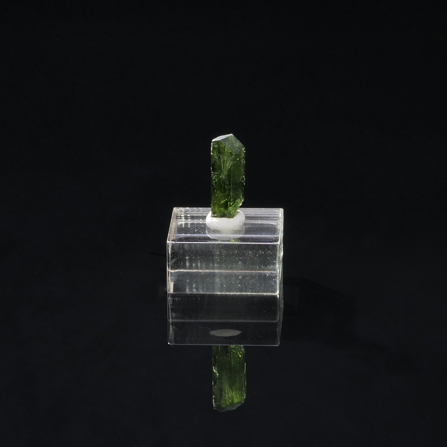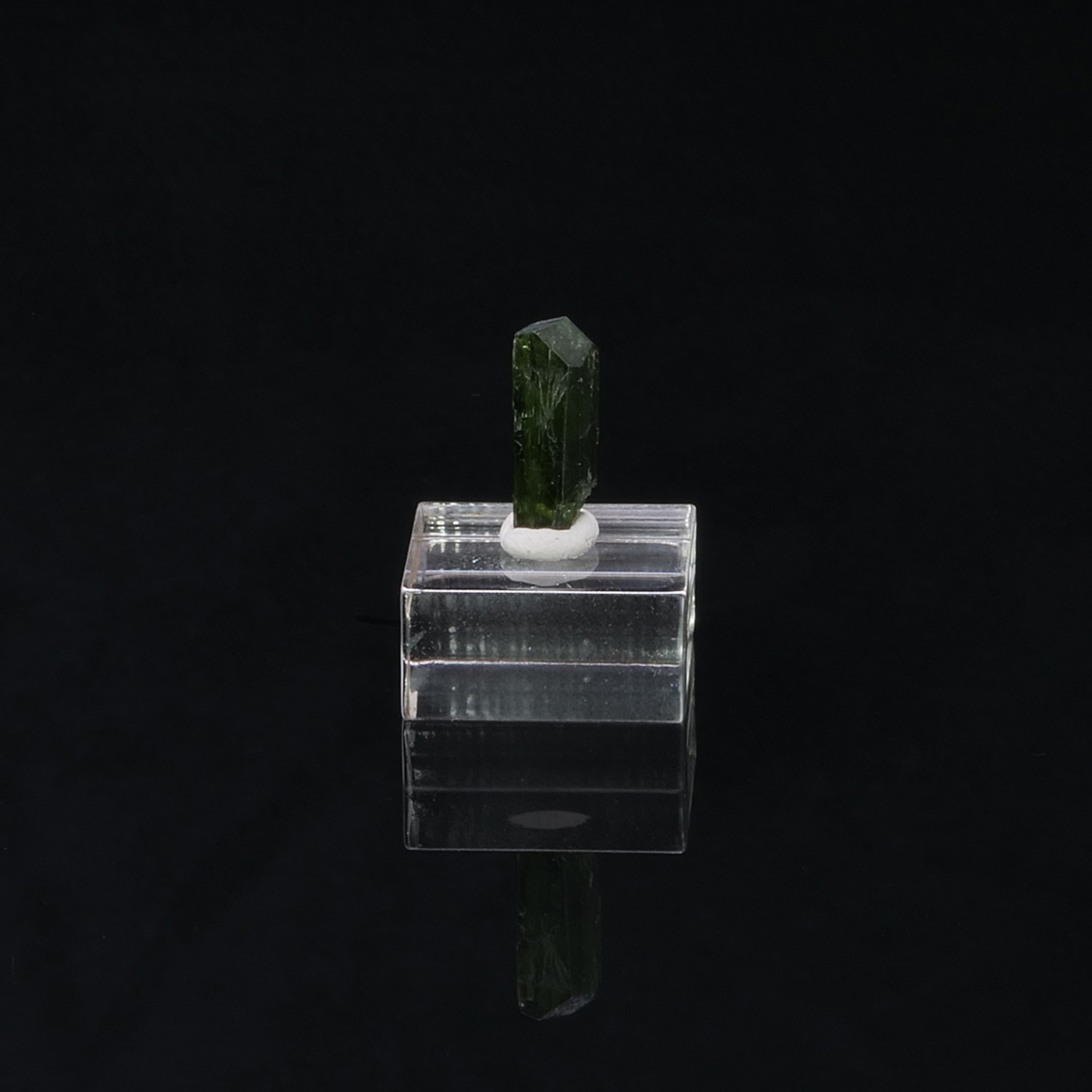 Cristal terminé et gemme de Chrome Diopside, minéral rare cristallisé ainsi, du Pakistan. Le cristal est vert intense, lustré et présente une très belle limpidité.