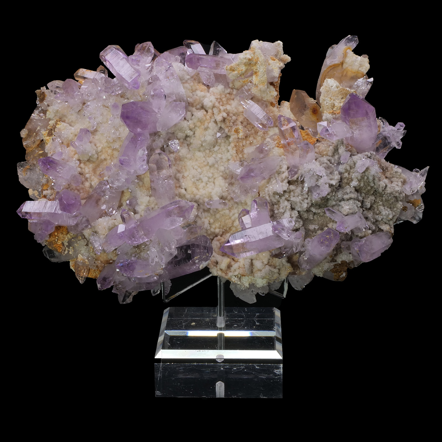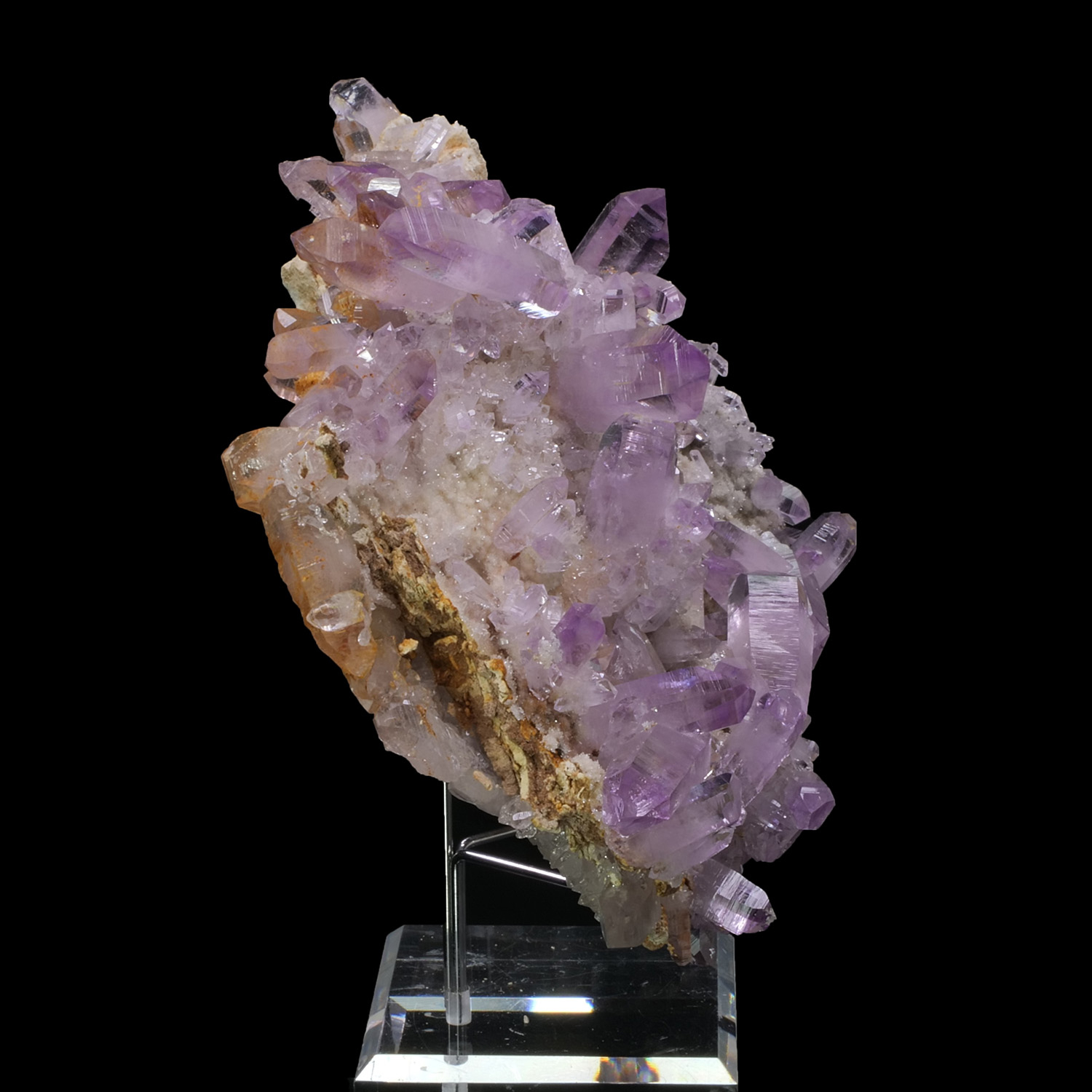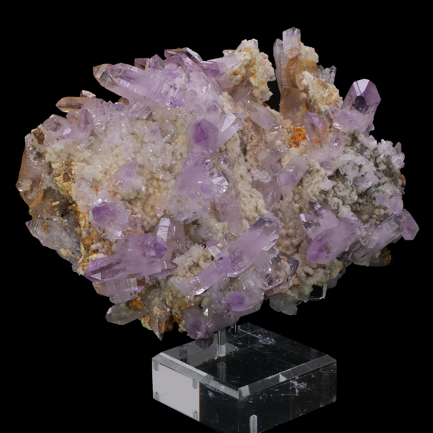 Présence de très nombreux cristaux de toute taille, du grand trapu au petit fin. La couleur est superbe avec ce violet prononcé et homogène sur toute la pièce. Les cristaux d’Améthyste recouvrent presque entièrement la gangue. Spécimen provenant de Veracruz au Mexique.