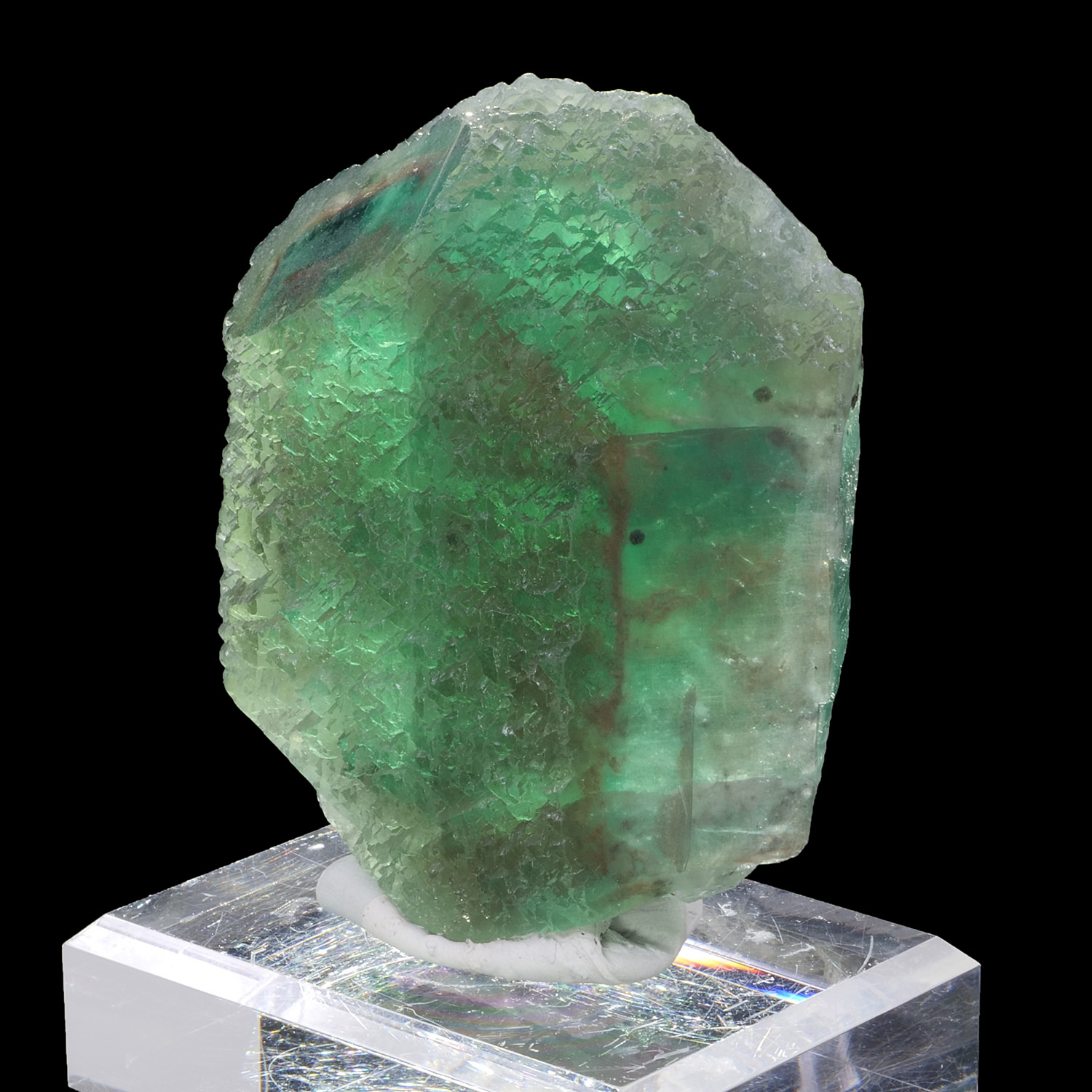 Gros cristal de Fluorite bien cristallisé avec la face principale présentant une belle architecture. La couleur verte est splendide, et la Fluorite est bien translucide avec une couleur profonde et intense. Spécimen provenant de la mine Milpo au Pérou.