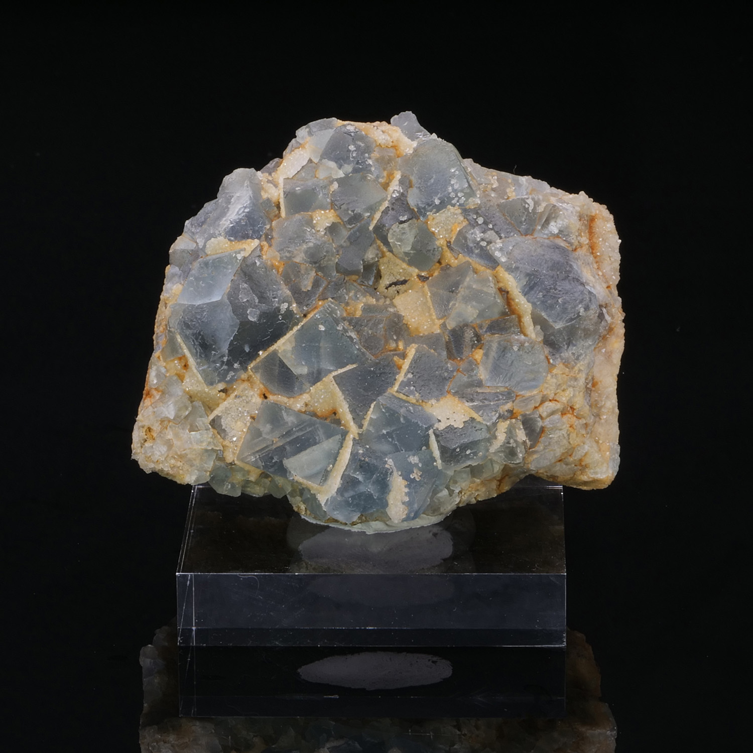 Cubes de Fluorite bleue sur gangue de Quartz massif et saupoudrés de quelques petits Quartz brillants. Spécimen provenant de Embournegade en France.