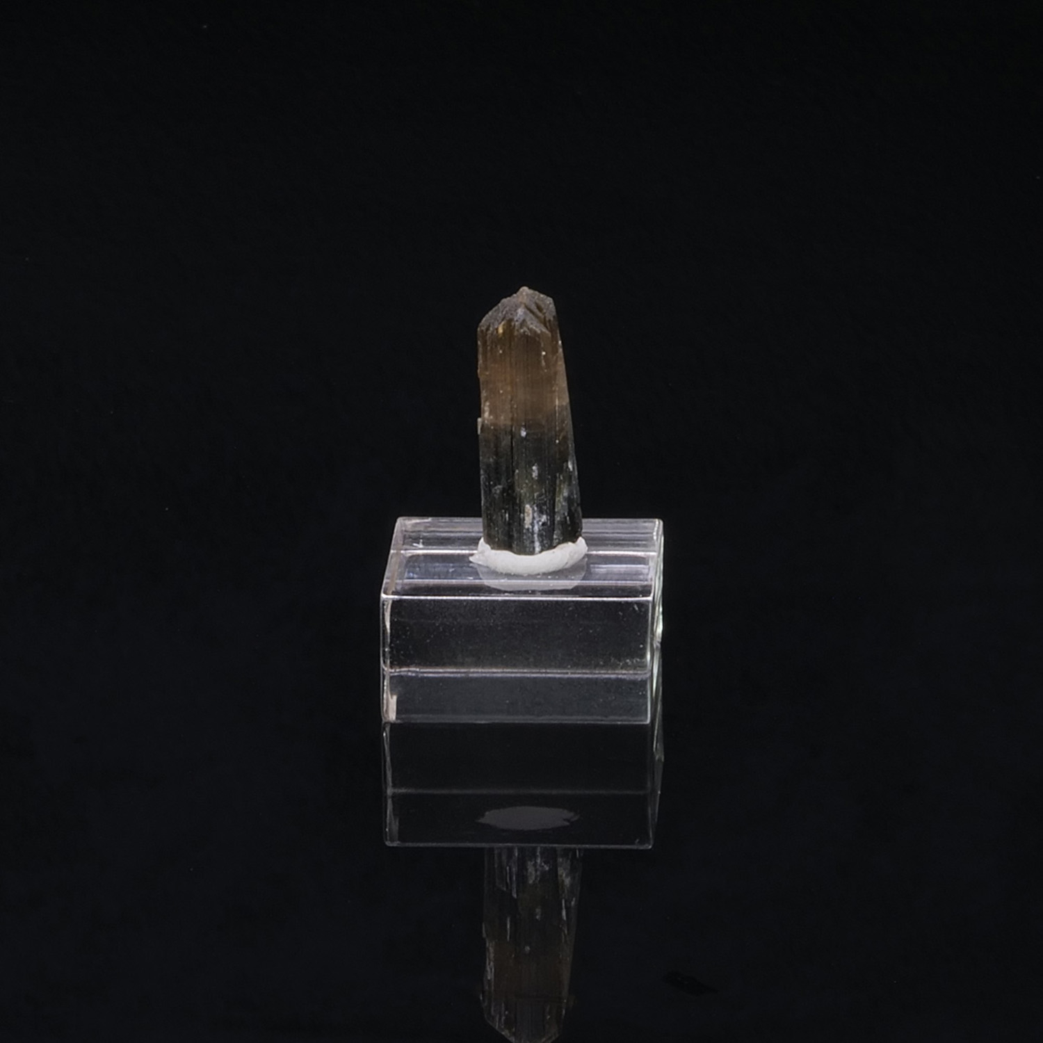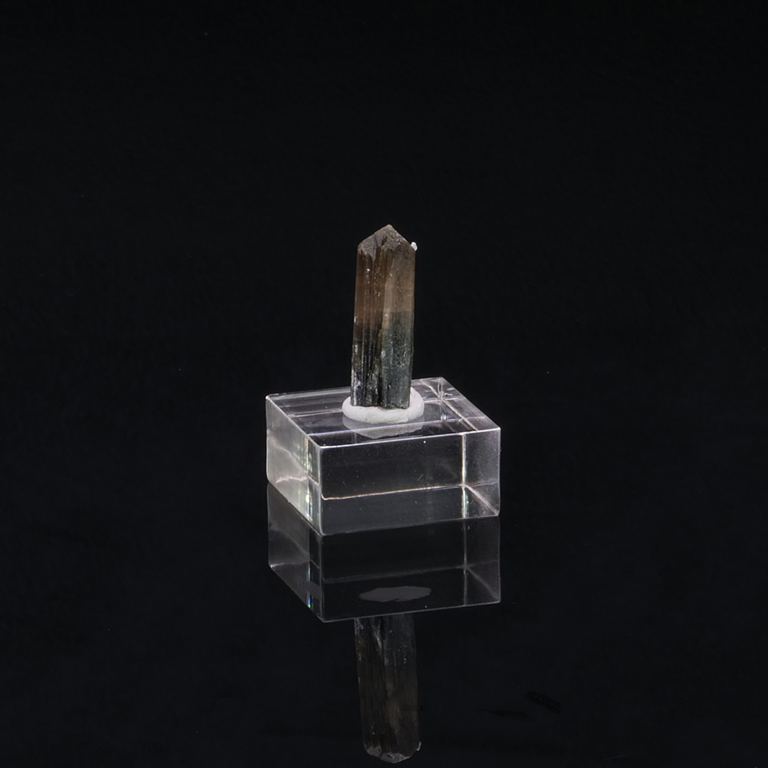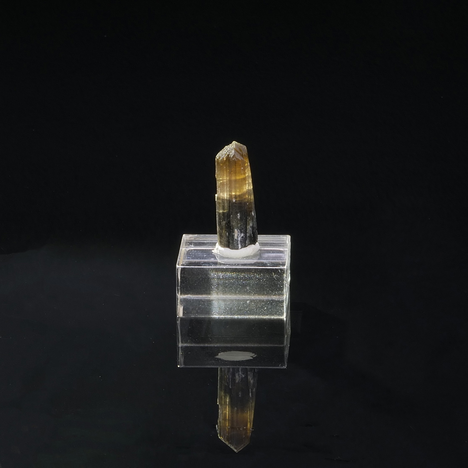 Très beau cristal de Tourmaline pluri centimétrique bicolore : jaune à la pointe puis vert très foncé. Les couleurs de ce spécimen sont encore plus mises en avant lorsque nous l’éclairons en rétroéclairage ! Tourmaline provenant de Tsarafara Sud à Madagascar.