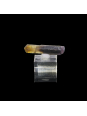 Très beau cristal biterminé de Tourmaline pluri centimétrique avec une terminaison rose très gemme, et une jaune flashy. Le centre est vert foncé. Les couleurs de ce spécimen sont encore plus mises en avant lorsque nous l’éclairons en rétroéclairage ! Tourmaline provenant de Tsarafara Sud à Madagascar.