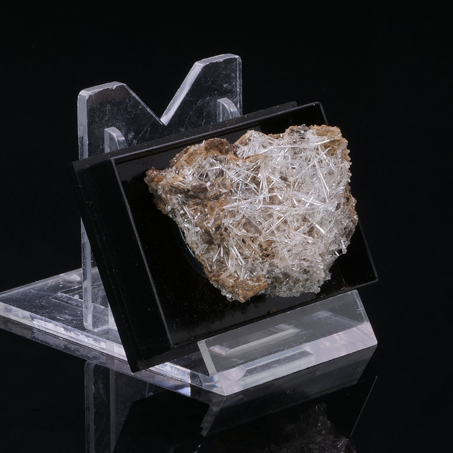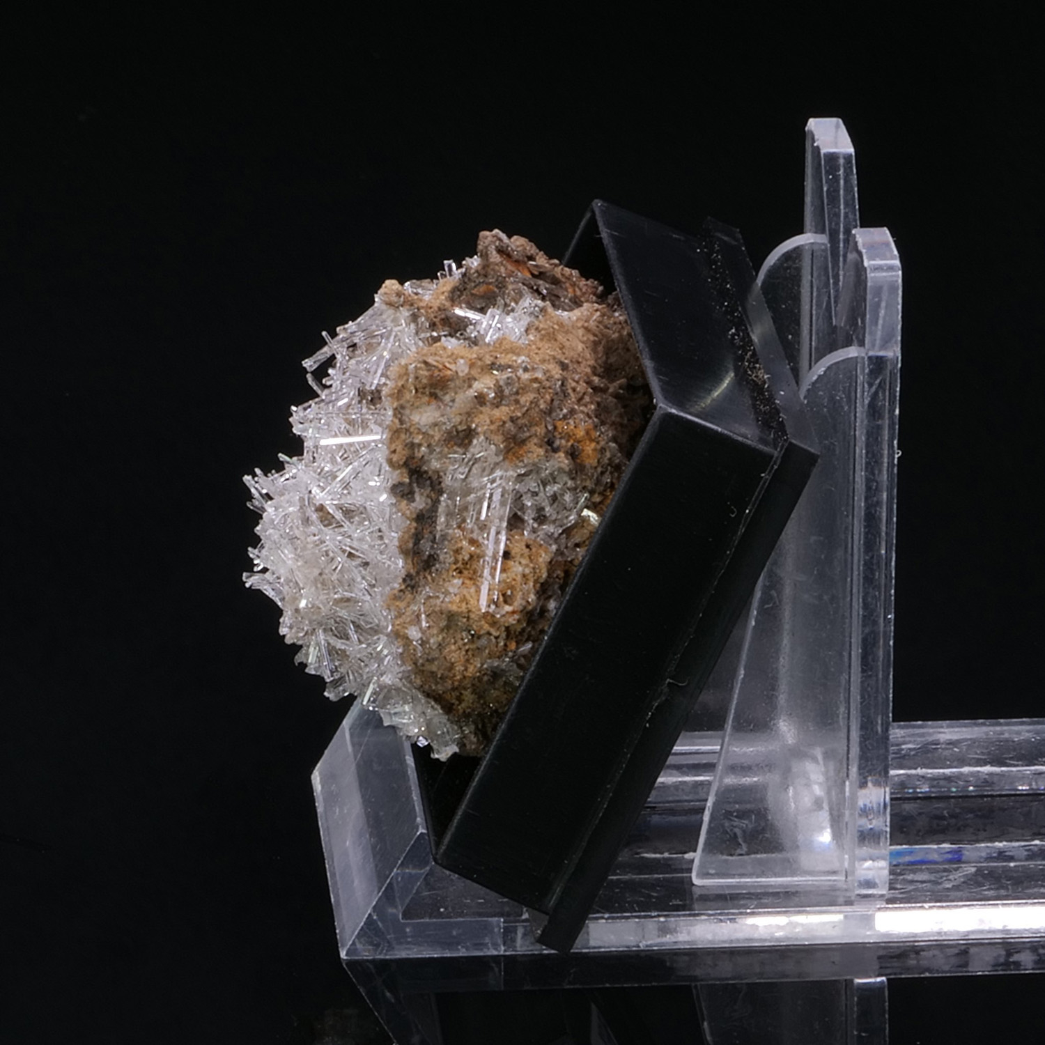 Spécimen tout en finesse avec ces cristaux en forme d’aiguilles de Gypse incolore et lustrés. Gypse provenant de la mine San Timoteo en Espagne.