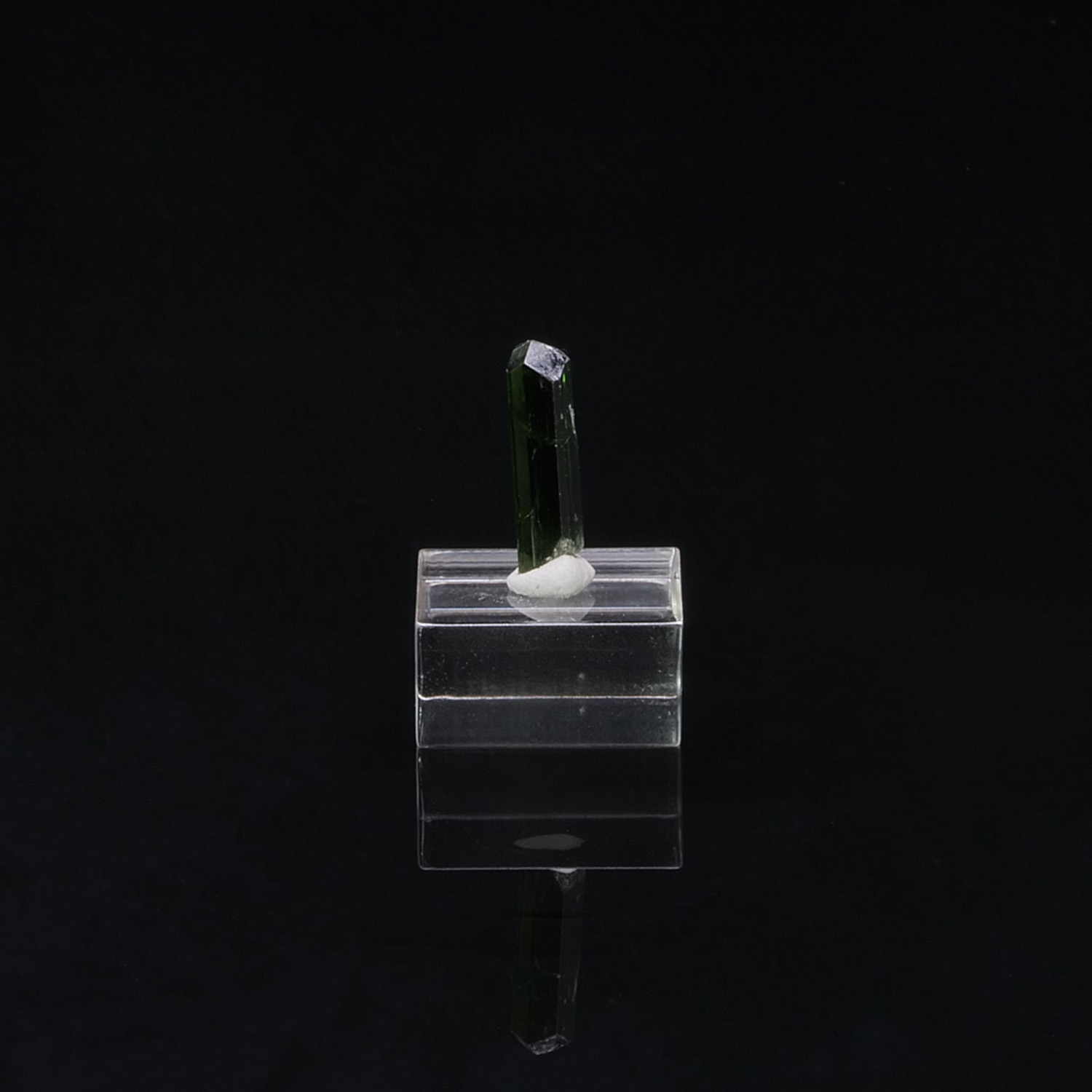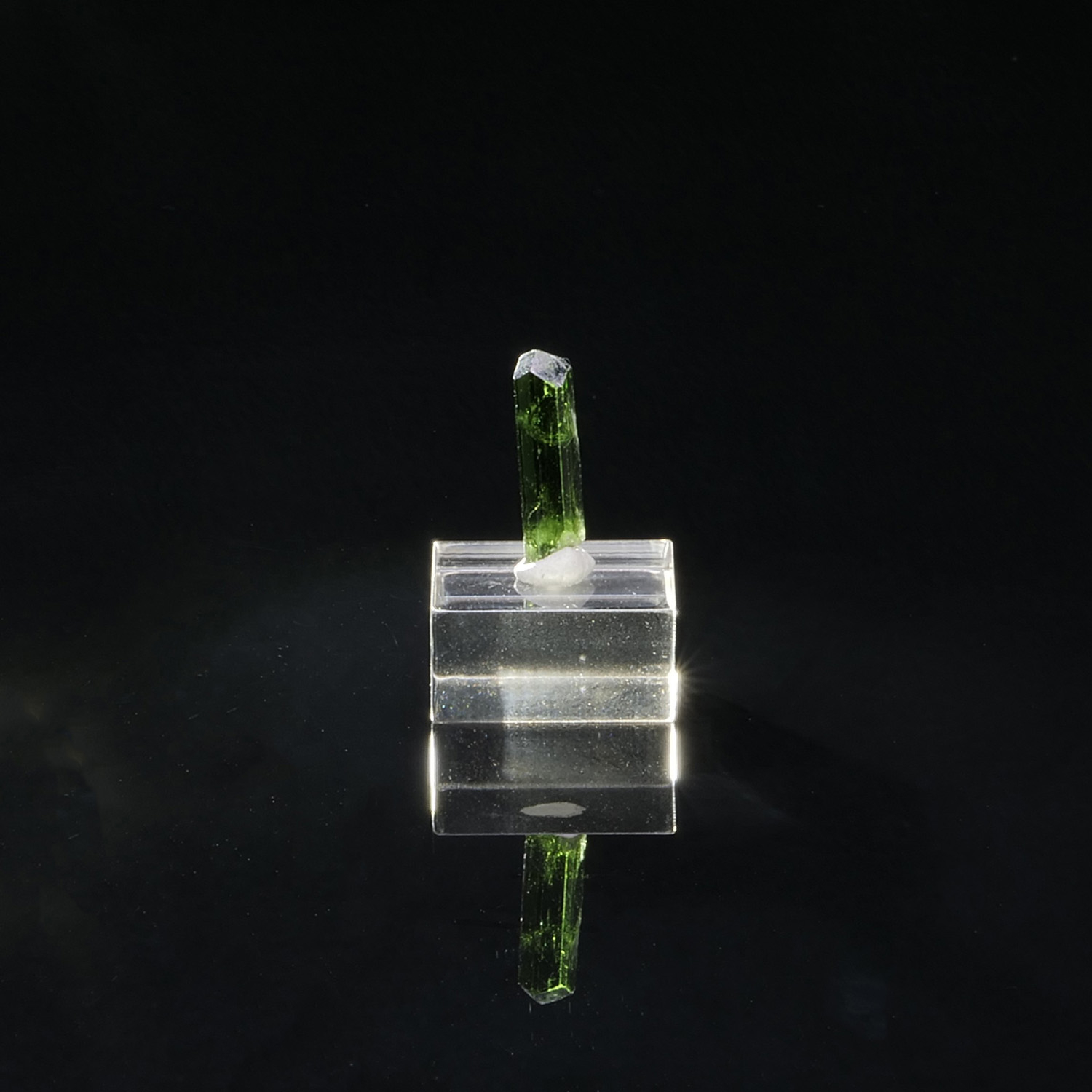 Cristal terminé et gemme de Chrome Diopside, minéral rare cristallisé ainsi, du Pakistan. Le cristal est vert intense, lustré et présente une très belle limpidité.